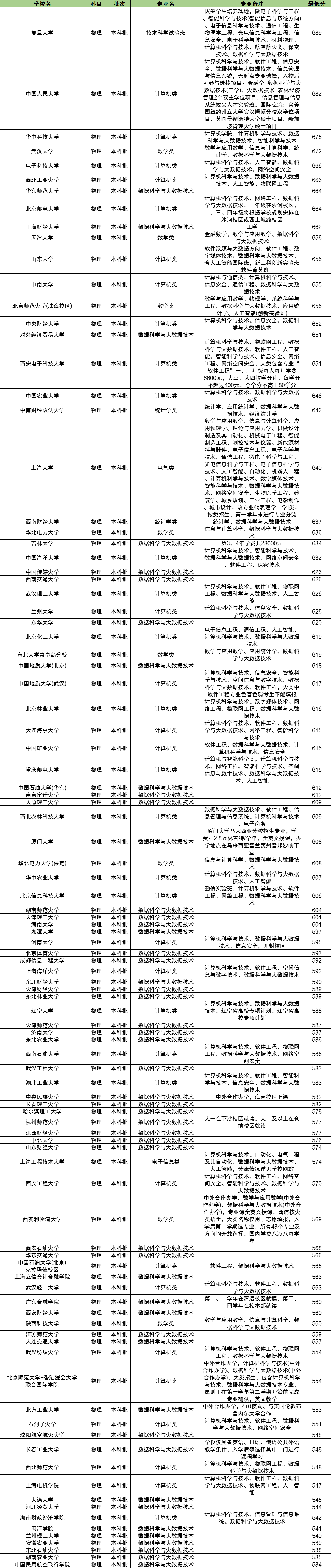 中国人民大学:计算机类(计算机科学与技术、软件工程、信息安全、数据科学与大数据技术、信息管理与信息系统),682分。