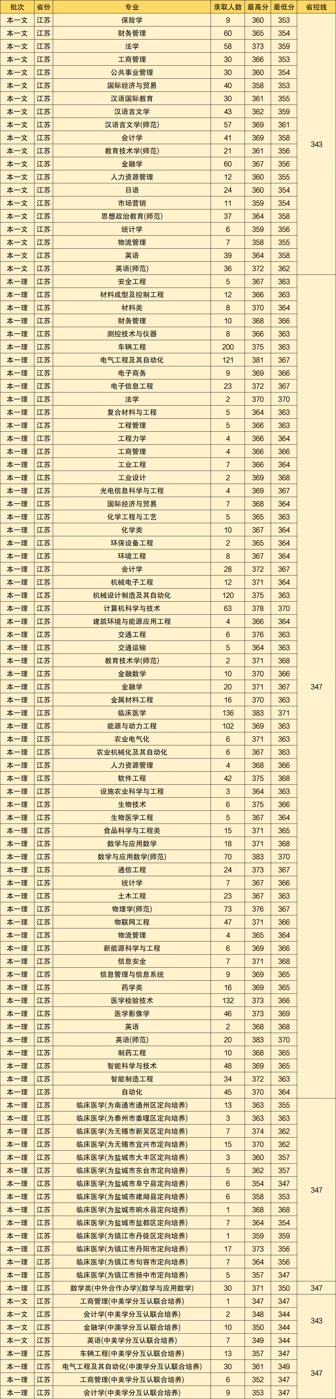 二、江苏大学各专业分数线(2021参考)