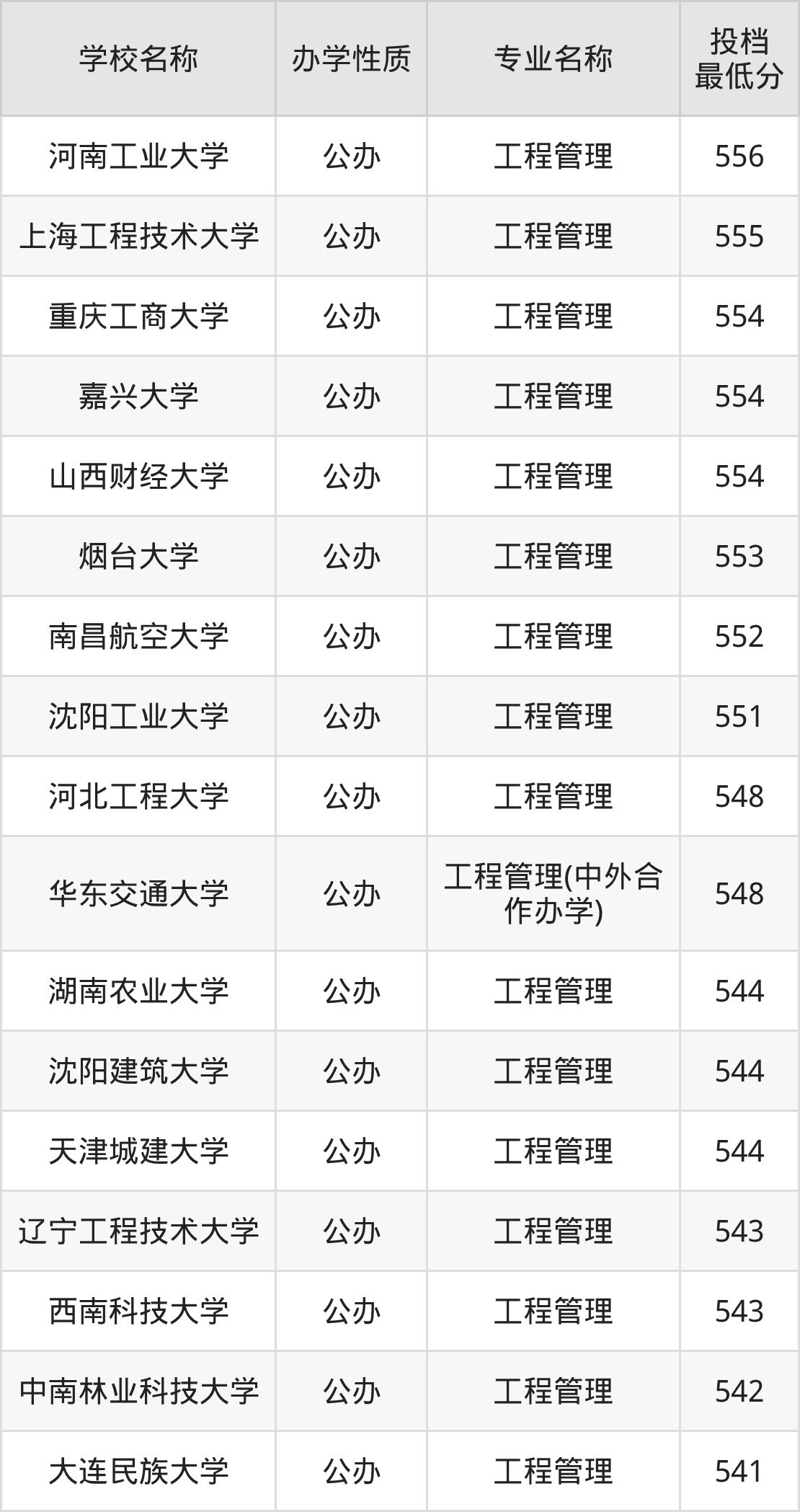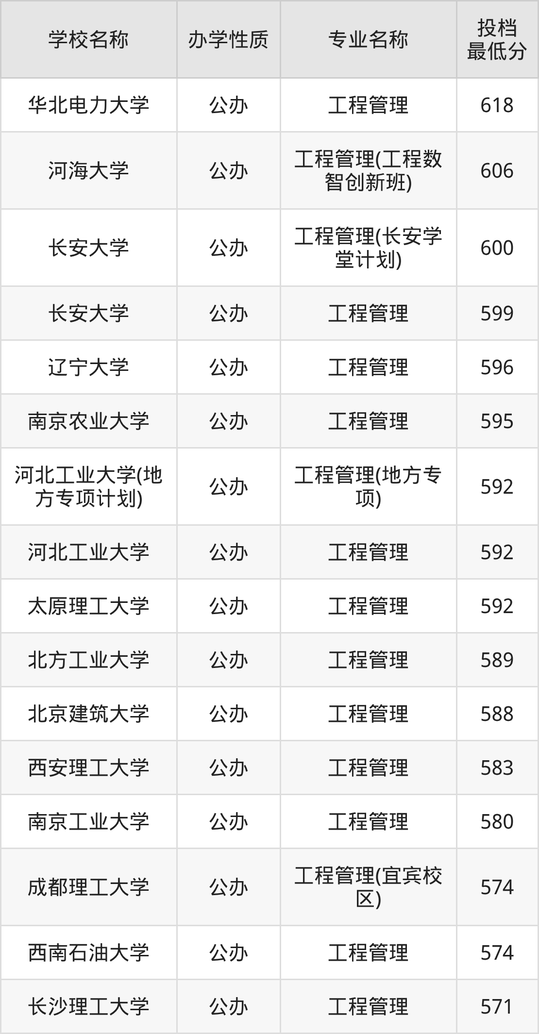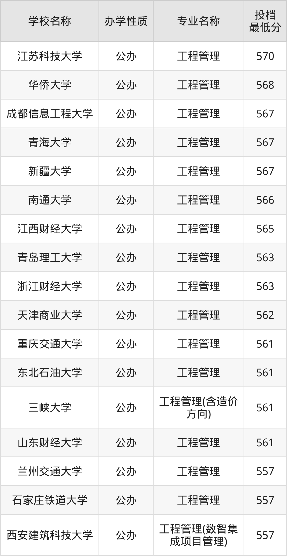 下面是2025年全国所有大学工程管理专业录取分数线一览表(按照分数线从高到低排名):
