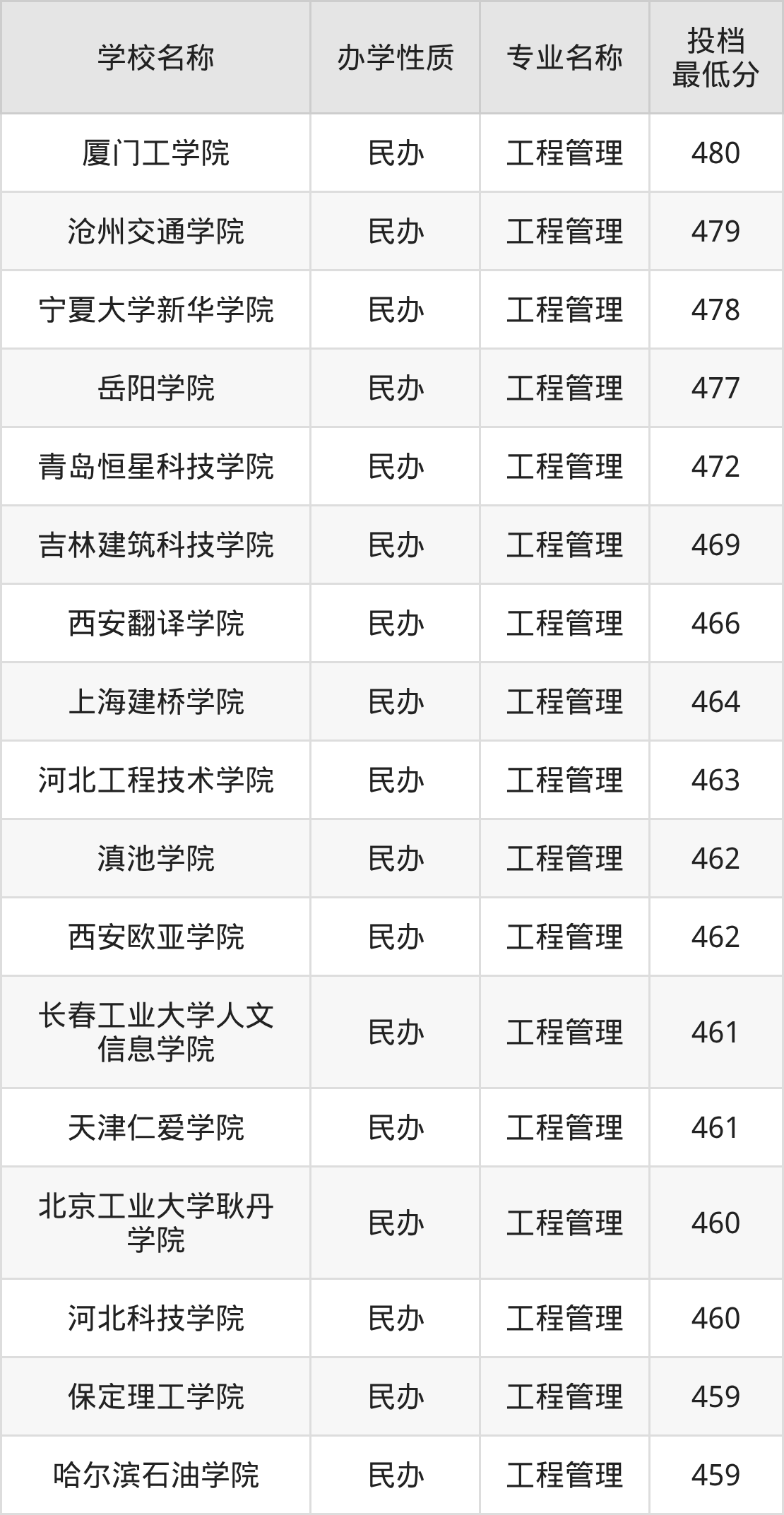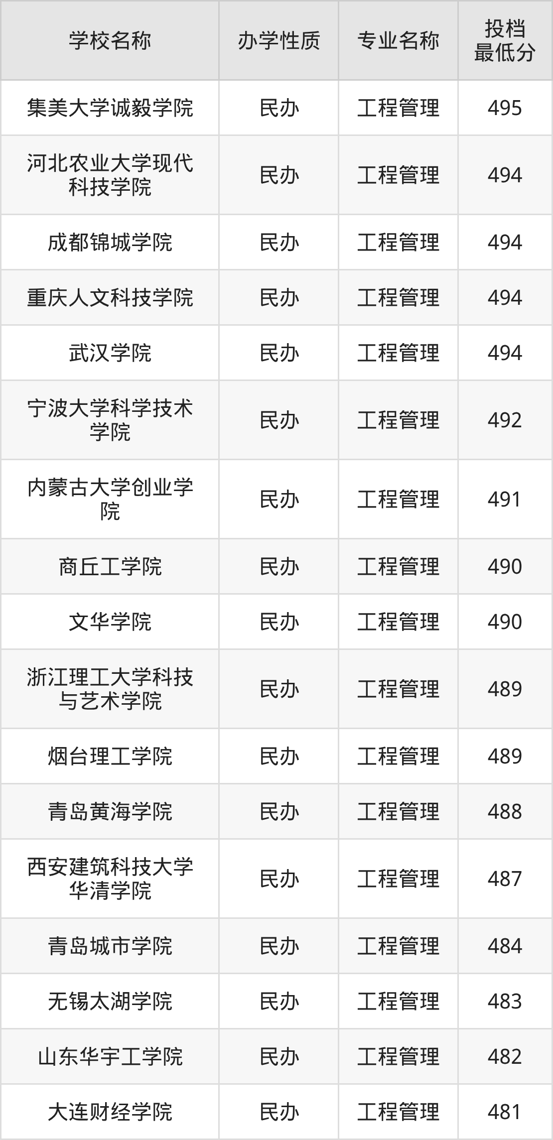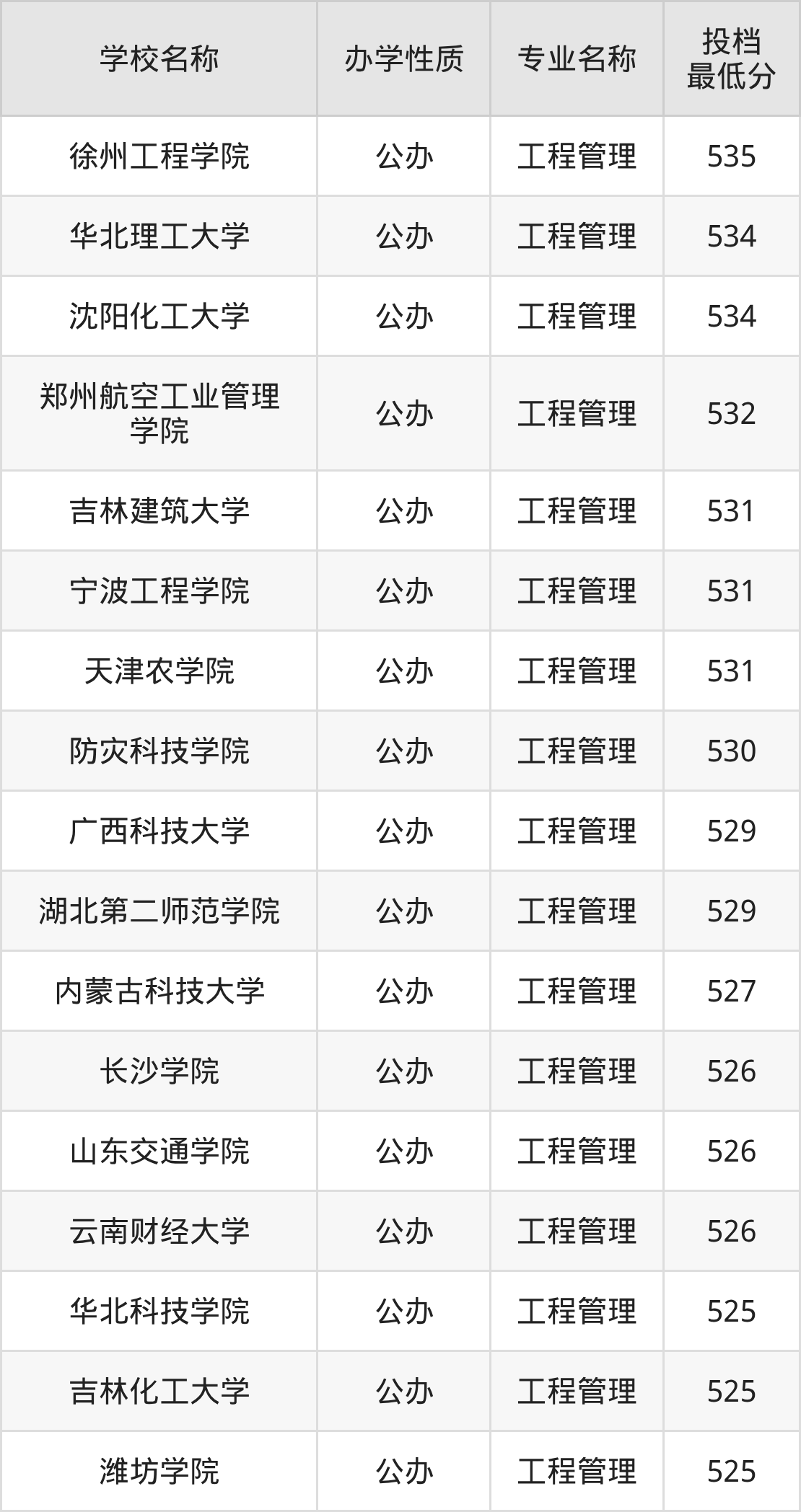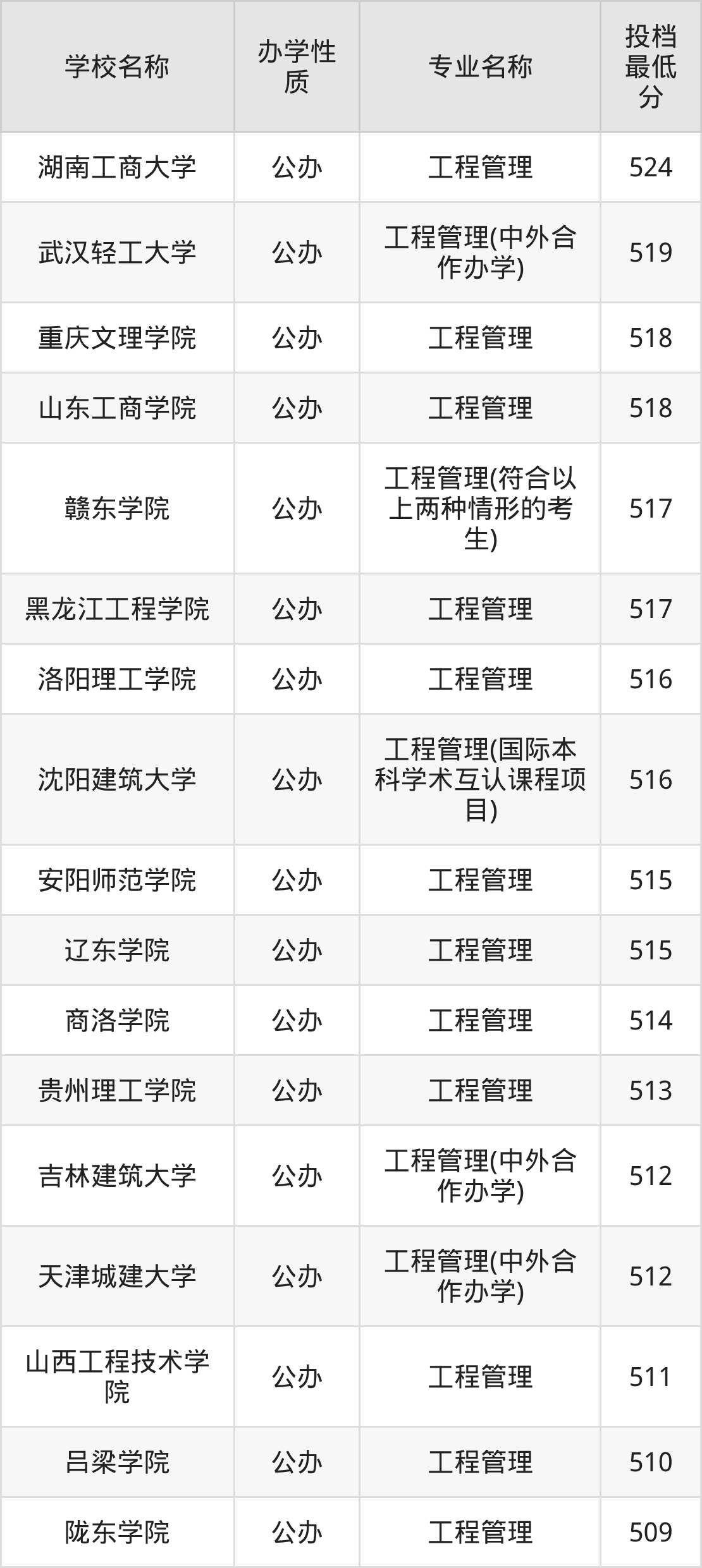 下面是2025年全国所有大学工程管理专业录取分数线一览表(按照分数线从高到低排名):