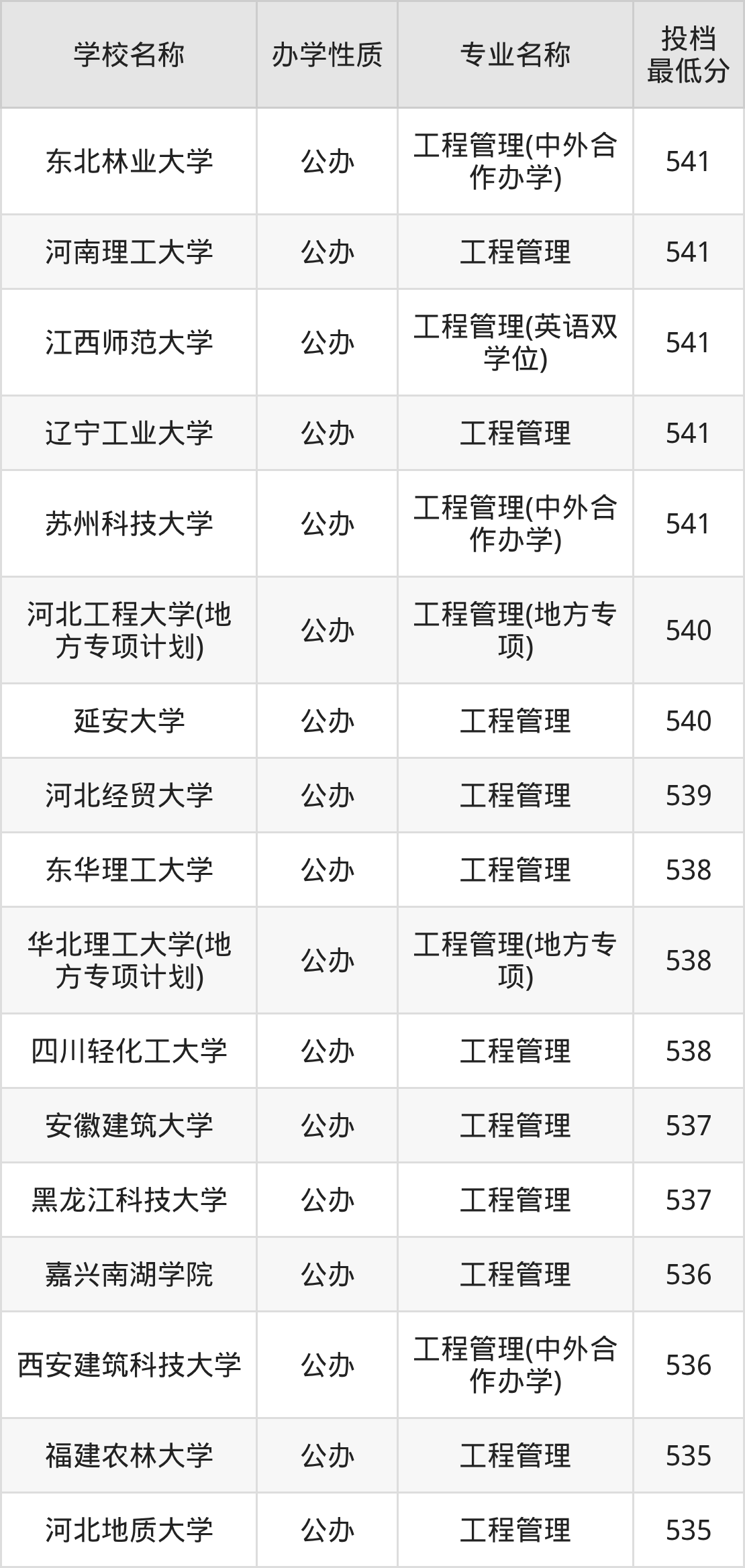 一、2025工程管理专业录取分数线多少