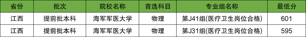 首选物理:第J31组最低分595分、第J41组最低分601分。