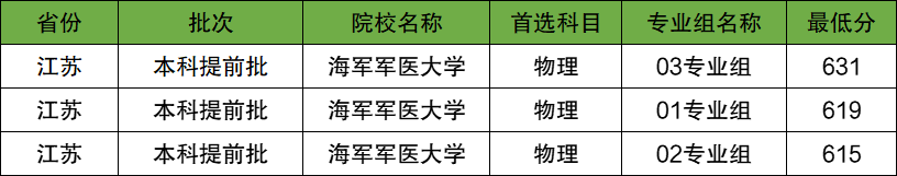 首选物理:01专业组最低分619分、02专业组最低分615分、03专业组最低分631分。