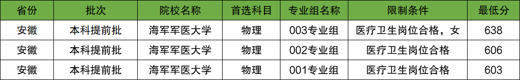 首选物理:001专业组最低分603分、002专业组最低分606分、003专业组最低分638分。