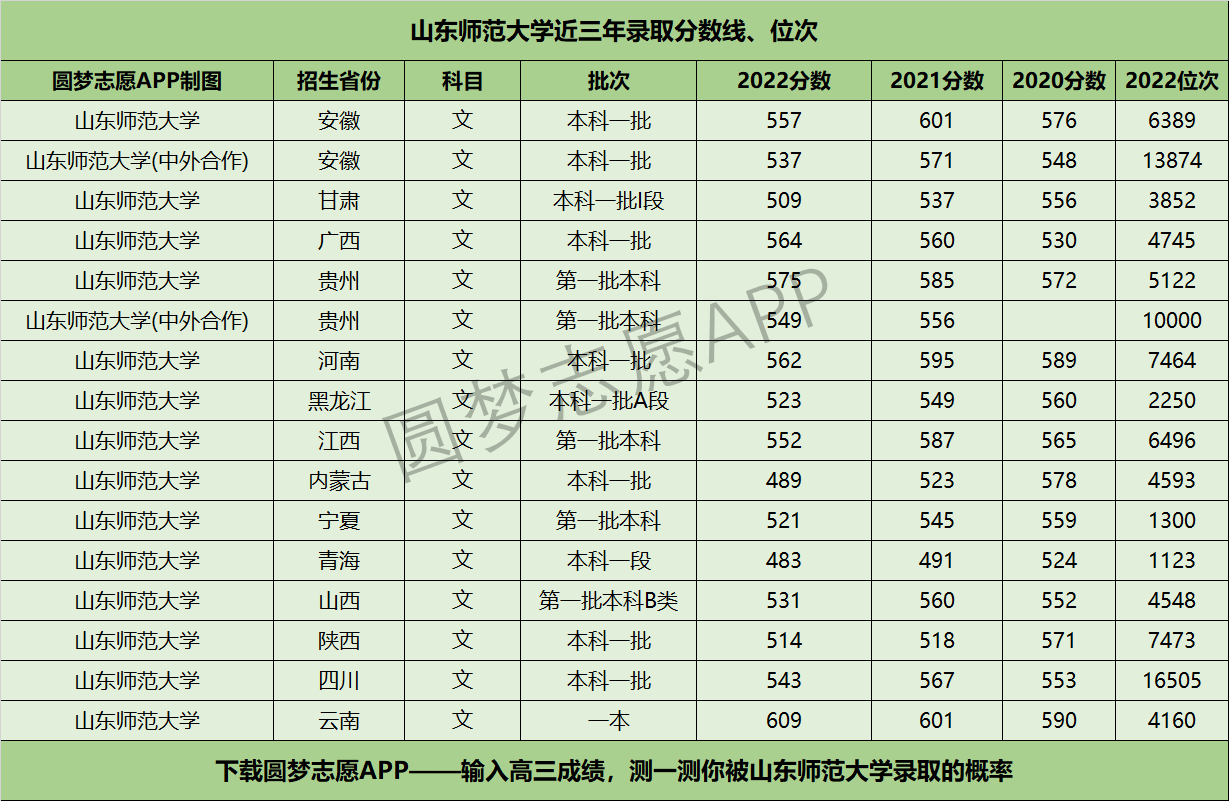 二、山东师范大学近三年录取分数线及位次【文科版】