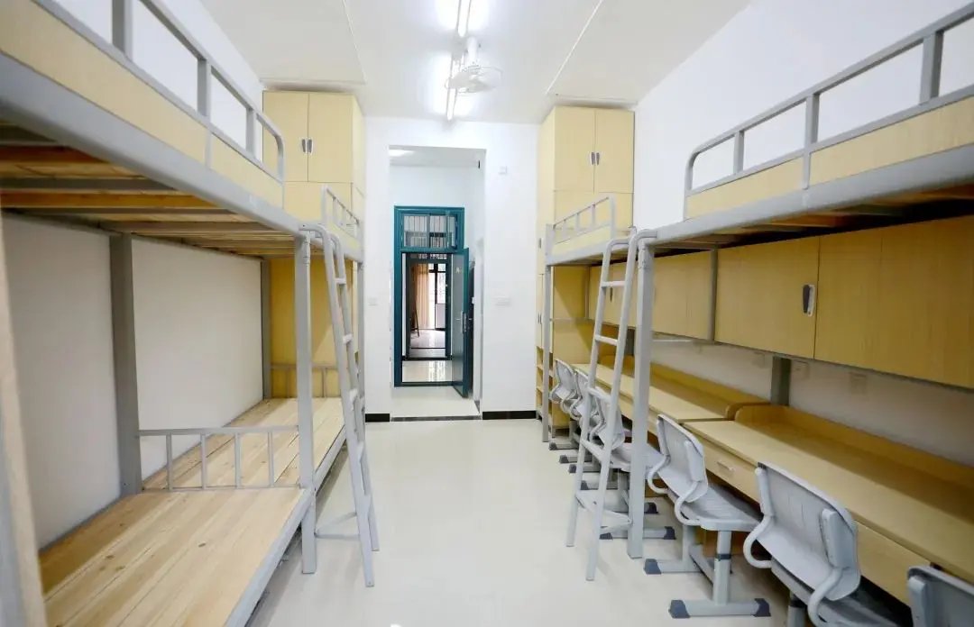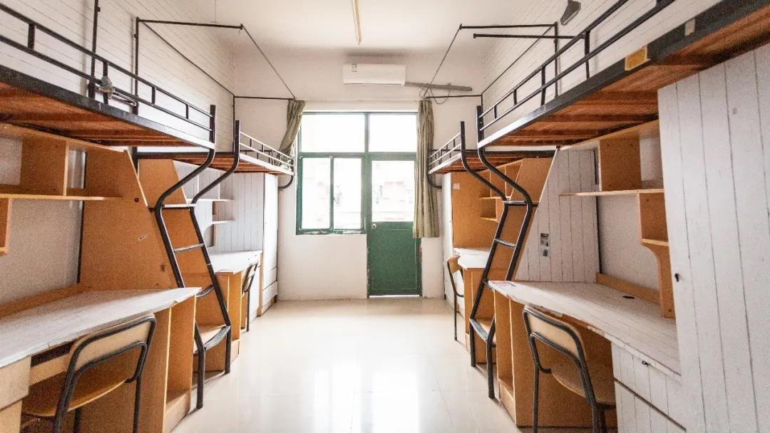 宿舍内部配有热水和空调,还有洗手台、桌椅。宿舍风扇空调一应俱全,能够很好满足学生的日常生活。