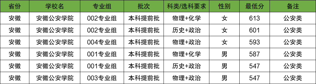 2025年安徽公安学院提前批录取分数线是547分到613分,录取最低为物理类男生、录取最高为物理类女生。