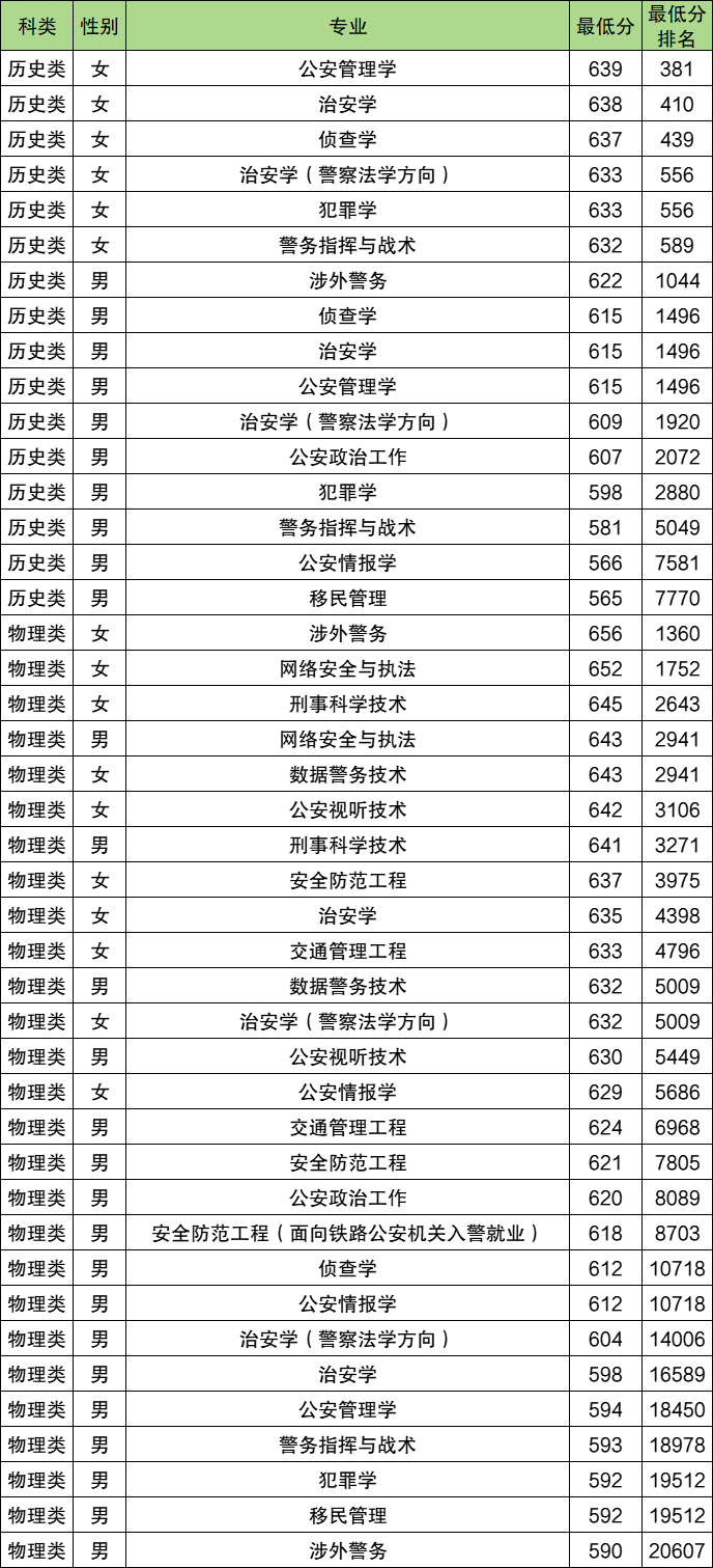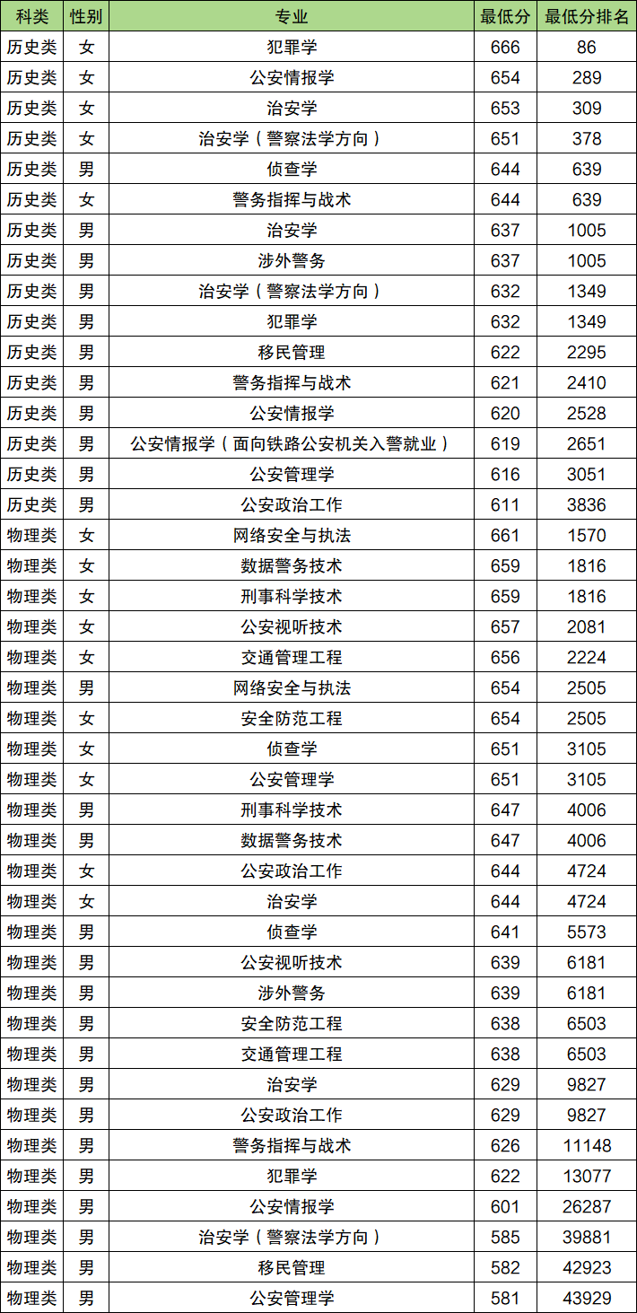 | 物理类 | 女 | 治安学 | 630 | 4705 |