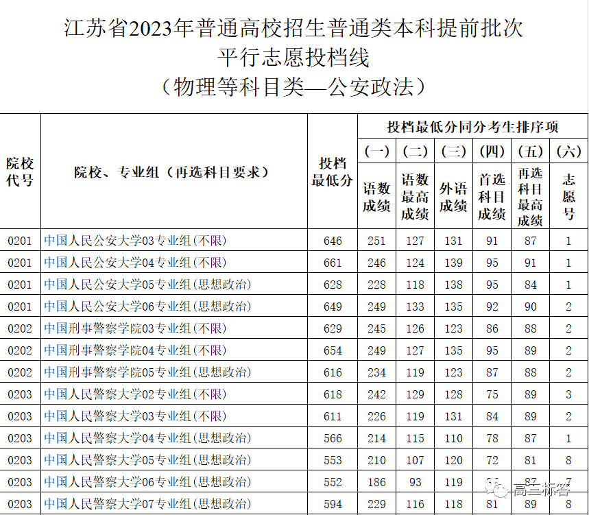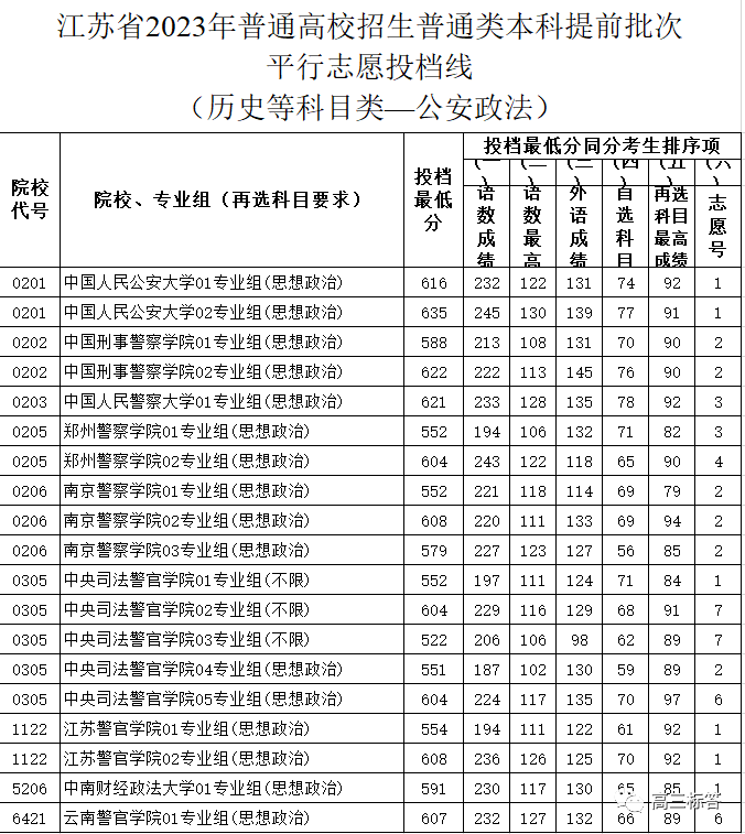 ①江苏省警校录取分数线