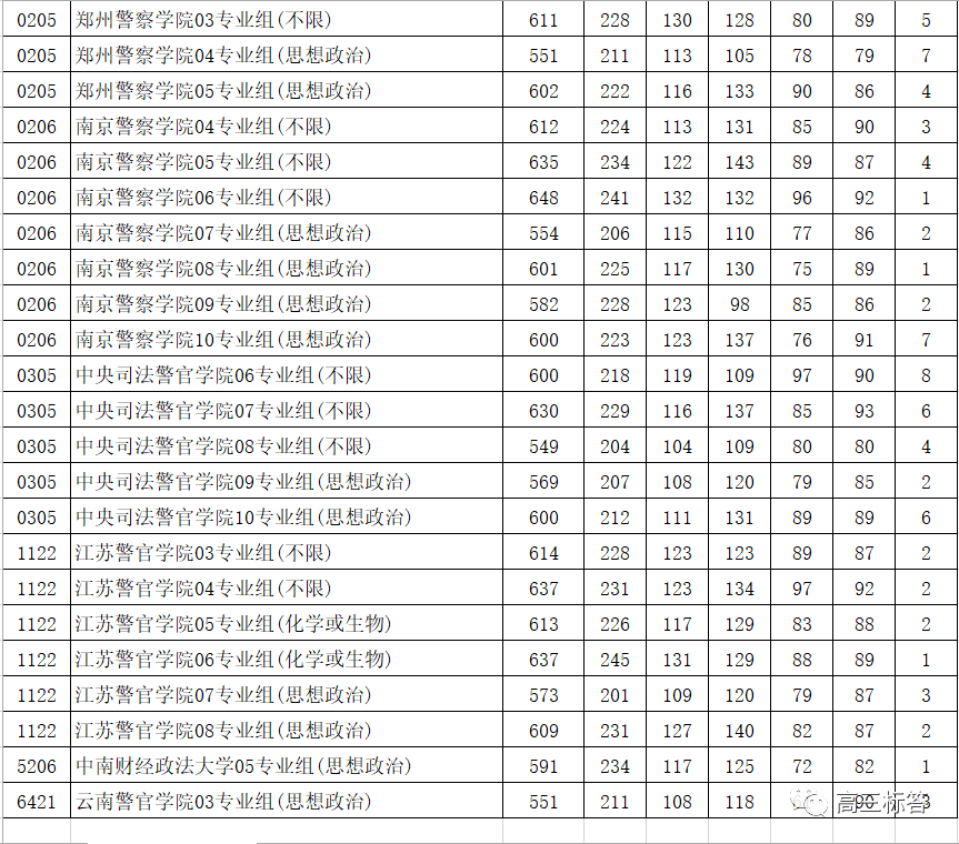 二、附全国警校排名及录取分数线表