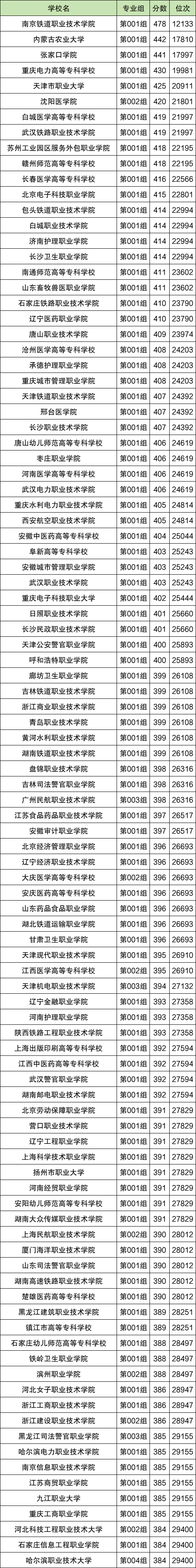 而分数线较高的省内公办大专有哈尔滨电力职业技术学院385分、黑龙江建筑职业技术学院389分、大庆医学高等专科学校396分等。