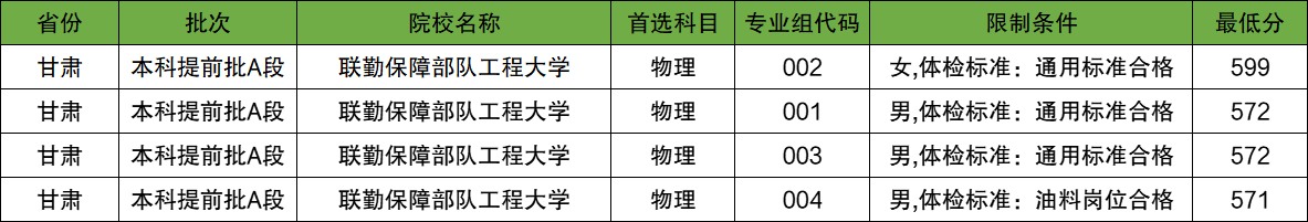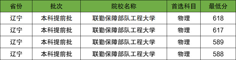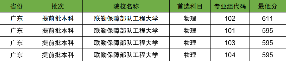 2025年联勤保障部队工程大学生长军官本科学员在广东的录取分数线整理如下,供大家参考。