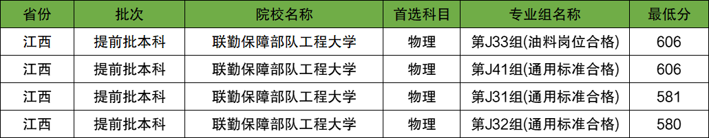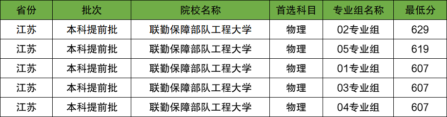 2025年联勤保障部队工程大学生长军官本科学员在江苏的录取分数线整理如下,供大家参考。