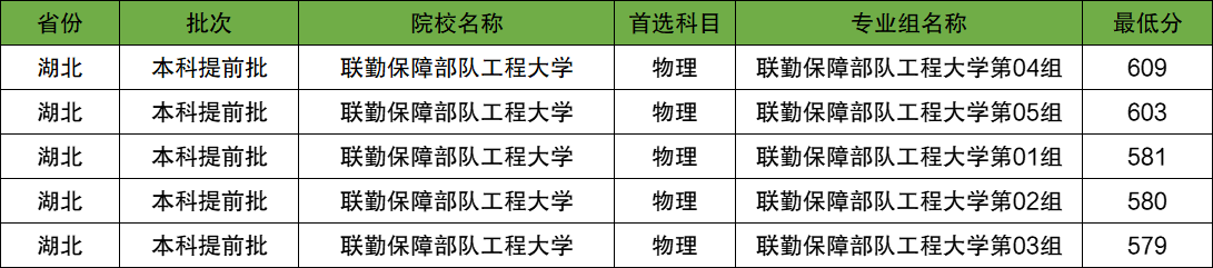 2025年联勤保障部队工程大学生长军官本科学员在湖北的录取分数线整理如下,供大家参考。