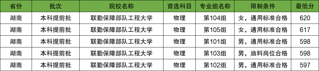 2025年联勤保障部队工程大学生长军官本科学员在湖南的录取分数线整理如下,供大家参考。