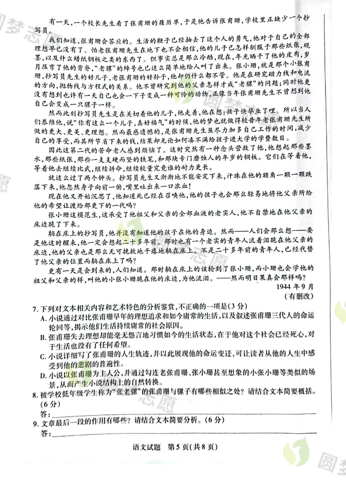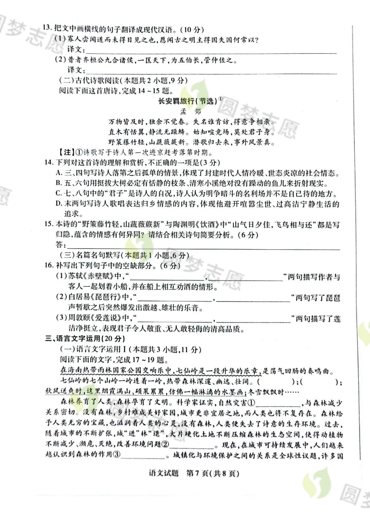 本次考试其他各科试题及参考答案汇总:https://www.gk100.com/read_100299.htm(点击/复制搜索链接即可查看)