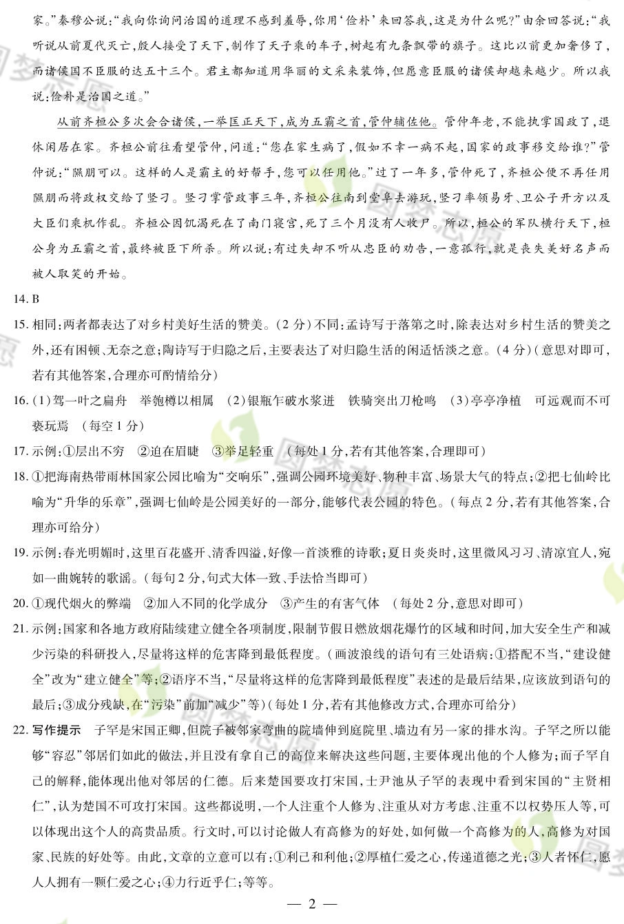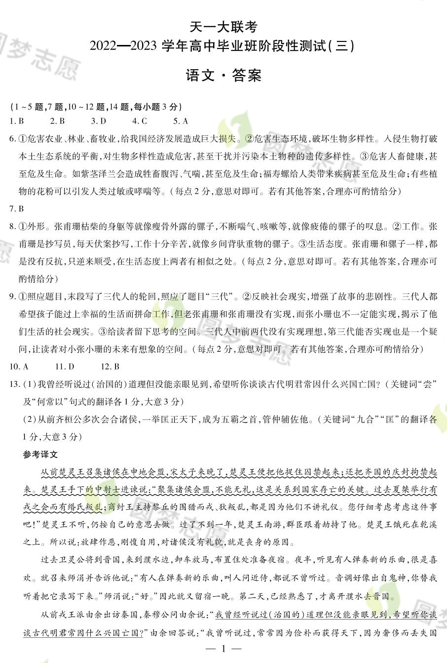 二、2023天一大联考高三12月三联考试语文参考答案