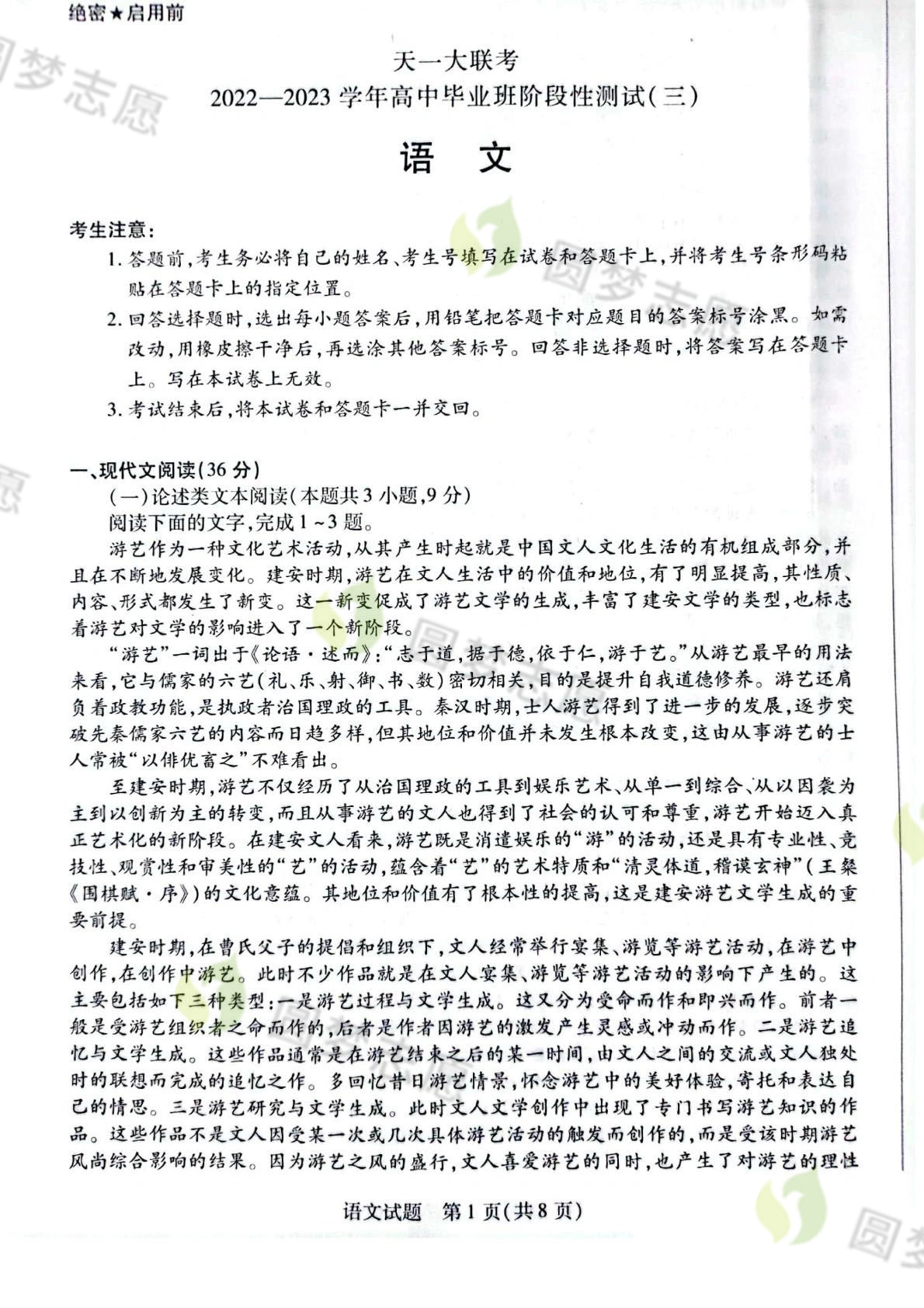 一、2023天一大联考高三12月三联考试语文试卷