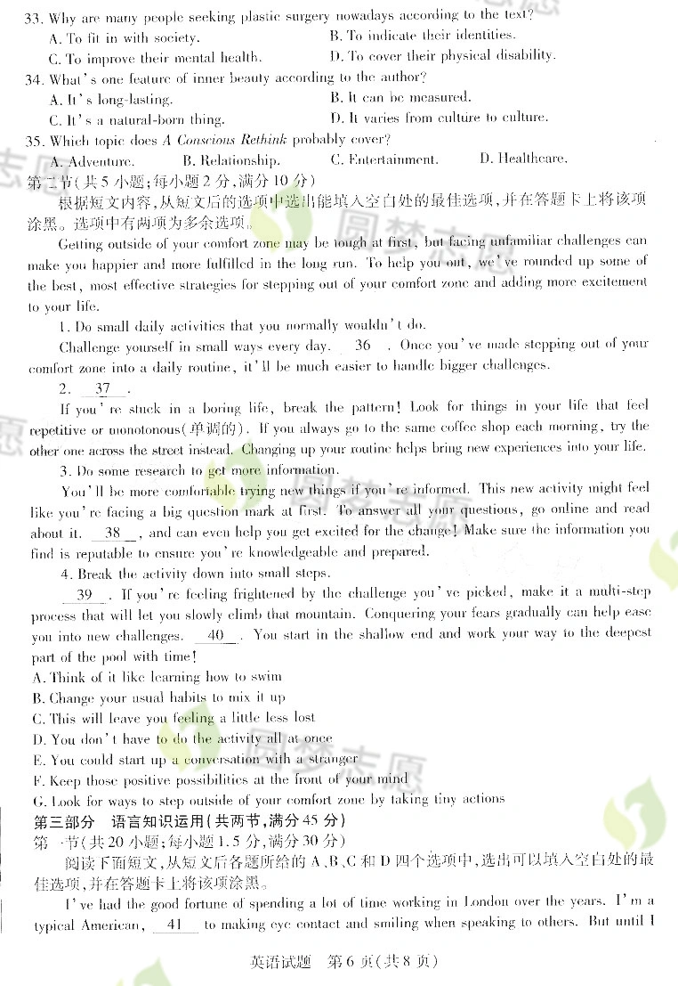 本次考试其他各科试题及参考答案汇总:https://www.gk100.com/read_100299.htm(点击/复制搜索链接即可查看)