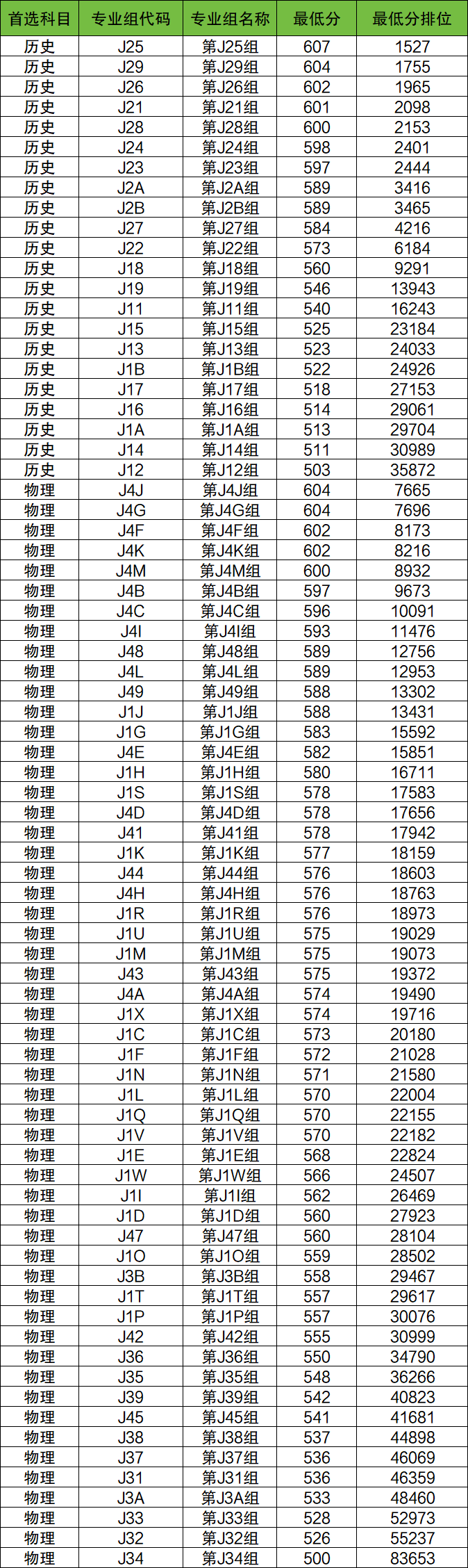 | 首选科目 | 专业组名称 | 最低分 | 最低分排位 |