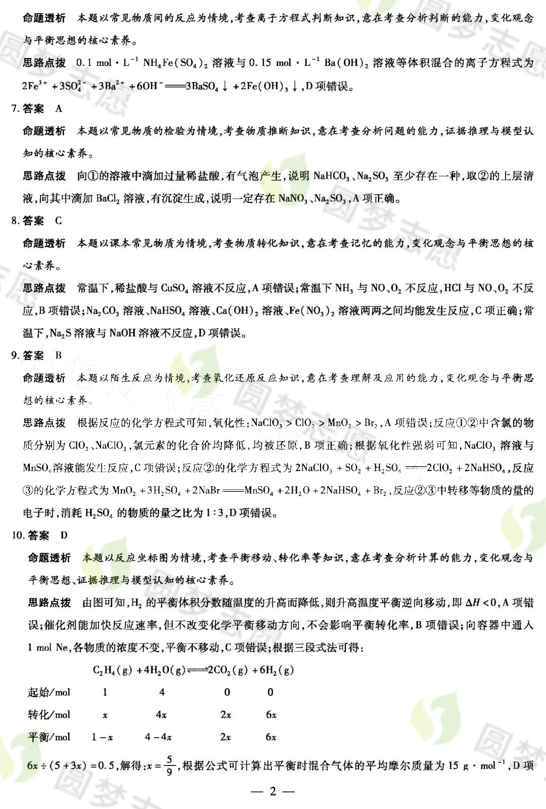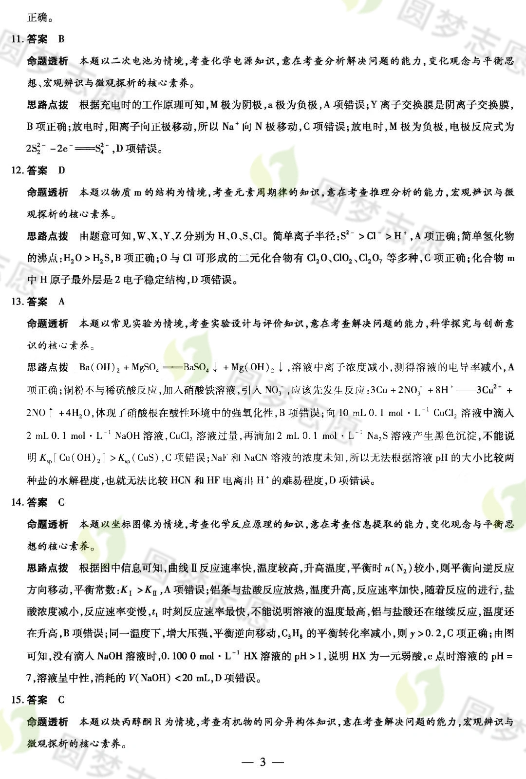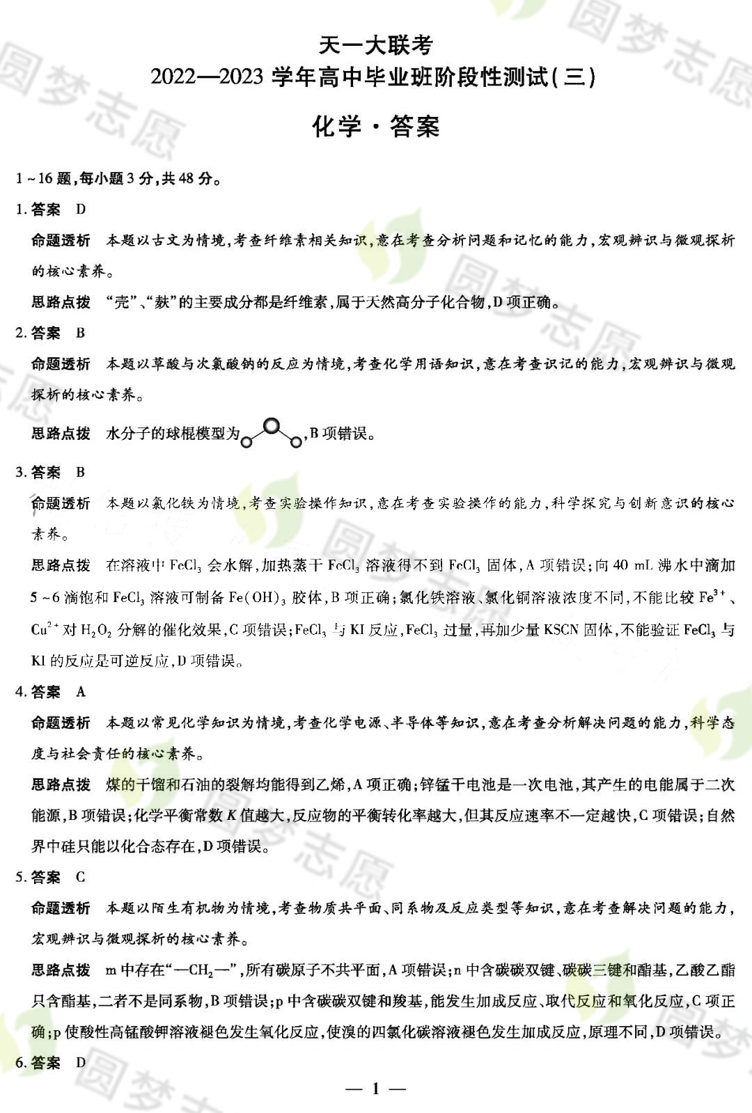 二、2023天一大联考高三12月三联考试化学参考答案