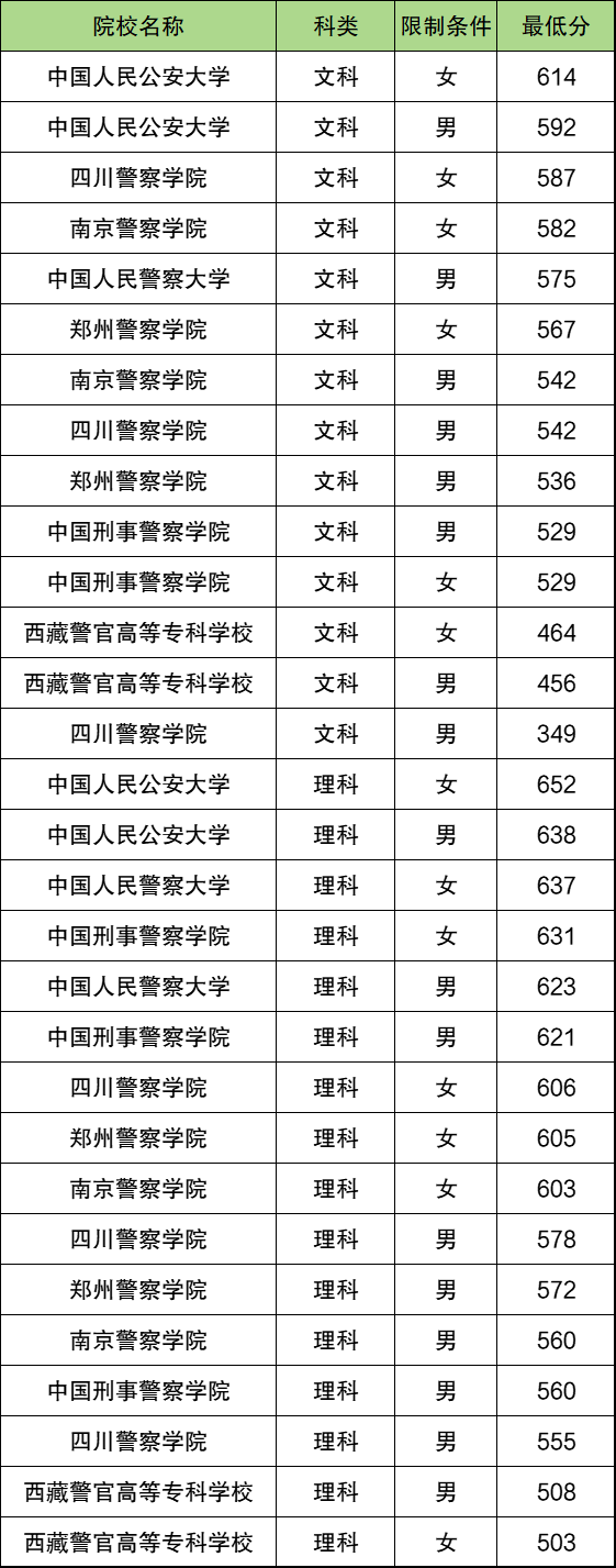 2024年警校在四川提前批的录取分数线为:文科349分-614分、理科503分-652分。