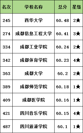 | 成都体育学院 | 成都 | 507 | 34328 |