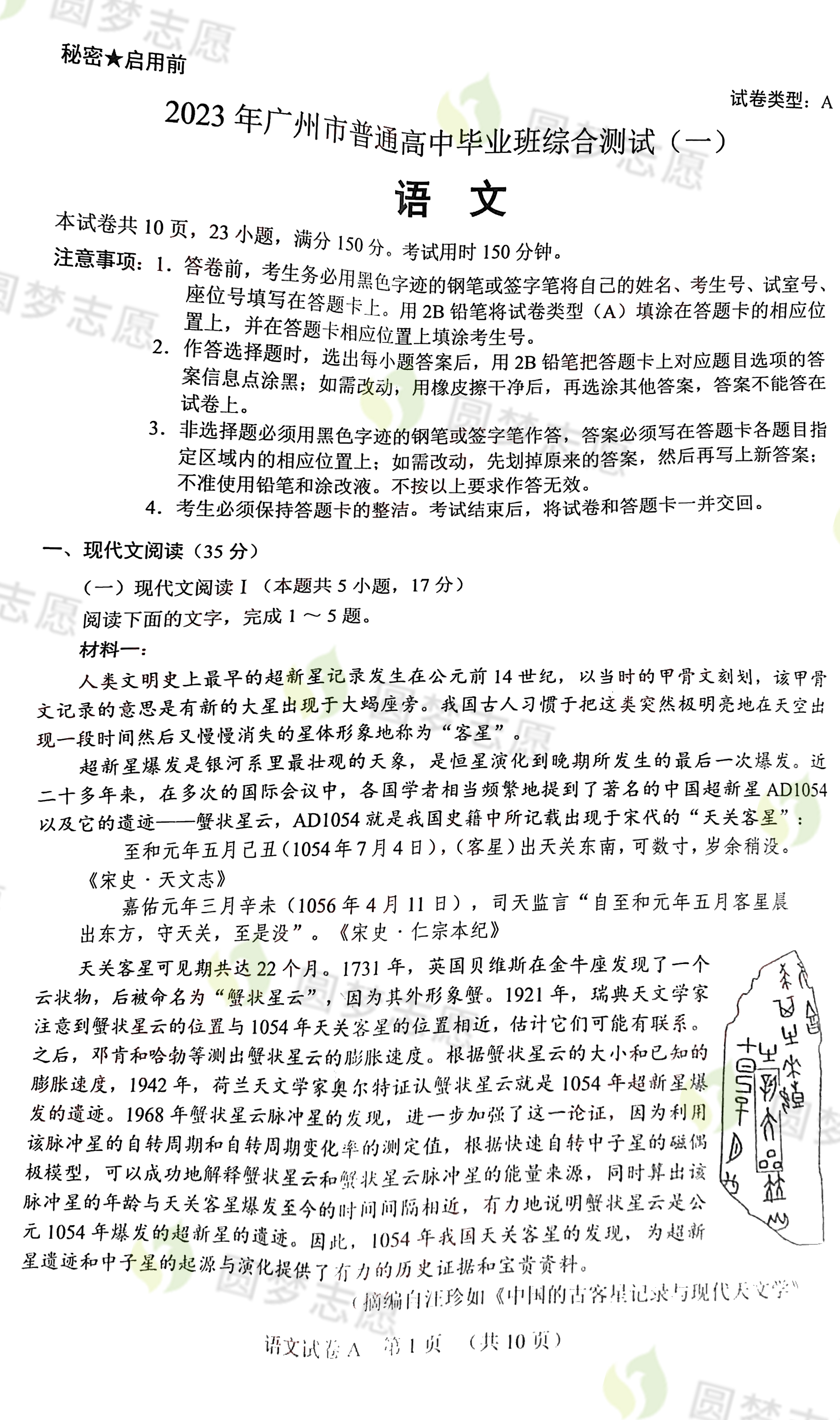 2023广州一模考试将于2023年3月15日进行考试,本文将在广州一模考试结束后及时更新2023广州一模考试语文试卷及参考答案解析,下文为小编收集整理的2023广州一模语文试卷及参考答案,供大家参考。