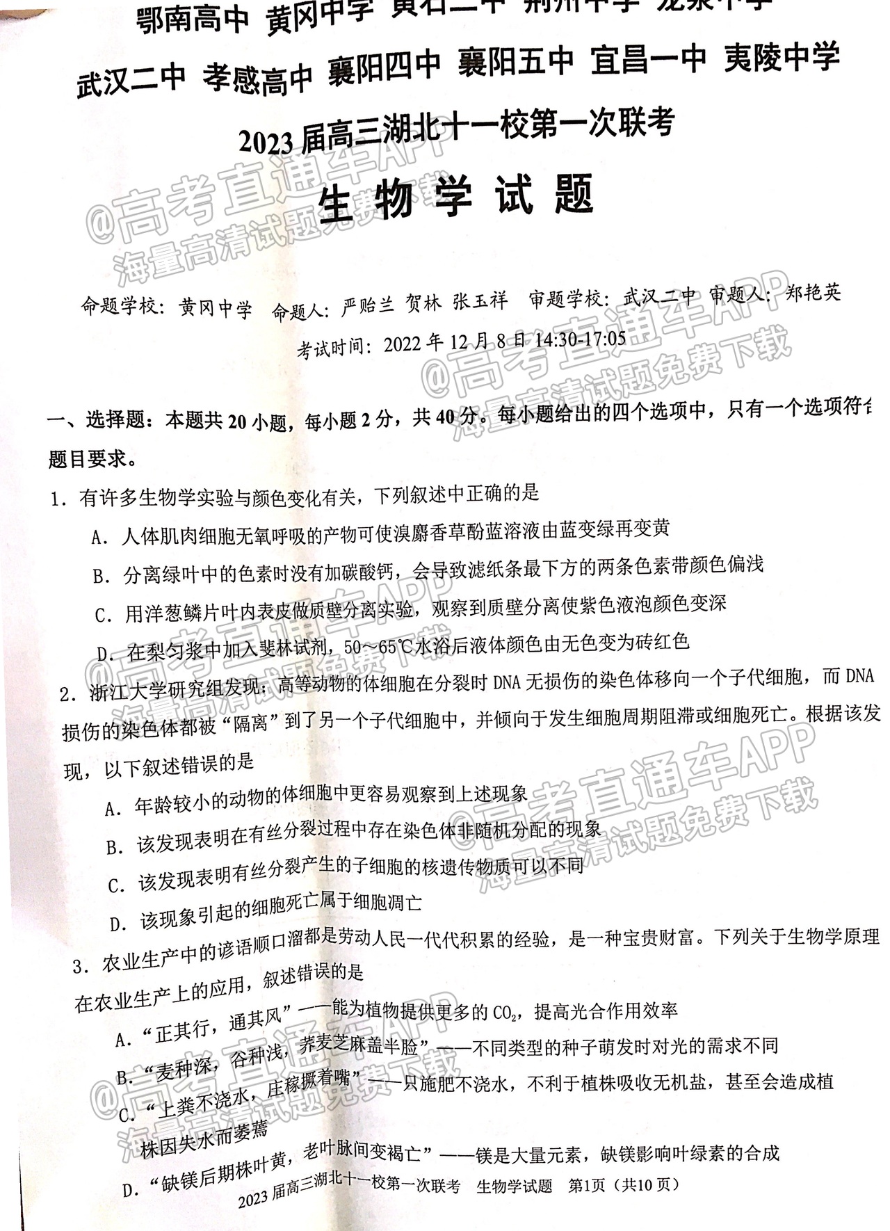 2023湖北十一校高三12月联考将于12月7日开考,本次的考试科目一共有九门,分别是语文、数学、英语、物理、化学、生物、政治、历史、地理。以下是生物的试卷详情及答案解析,详情如下: