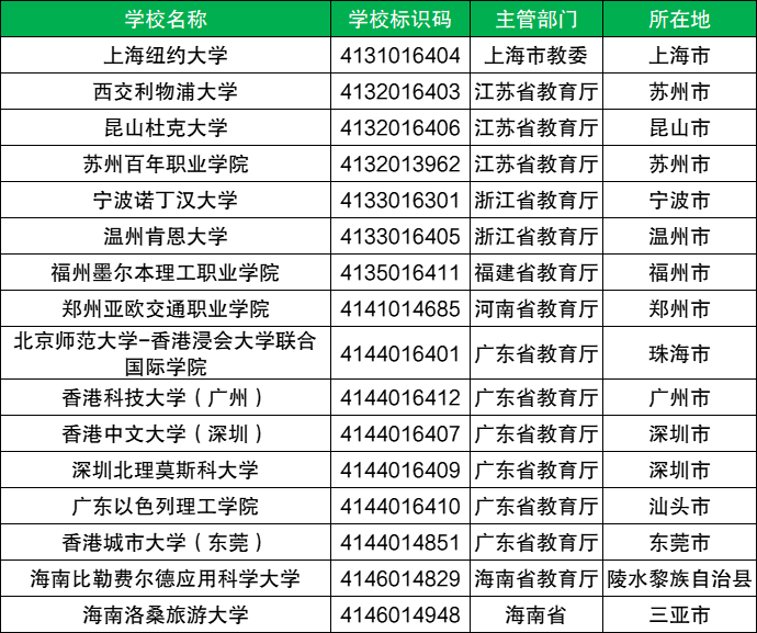 一、中外合作大学全部名单