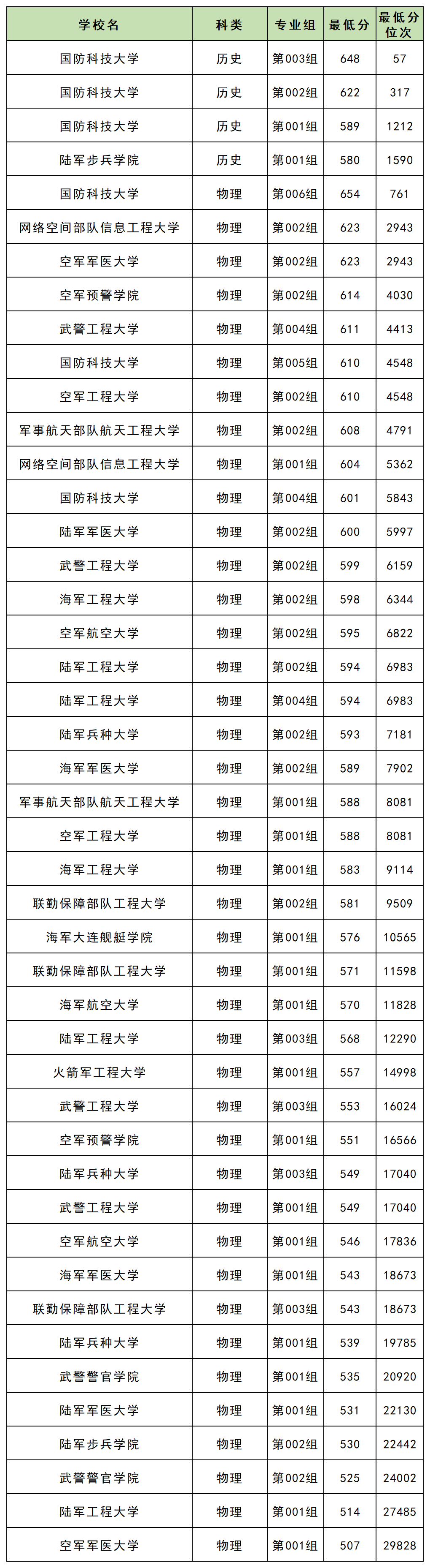 陆军步兵学院:第002组,2025年最低530分;