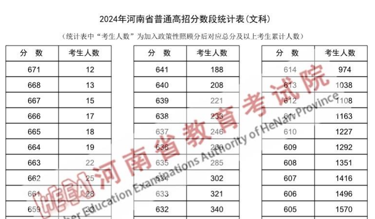 2024年河南文科一分一段表显示,文科500分对应位次范围在37675名~38365名之间,最低省排名位次为38365名。