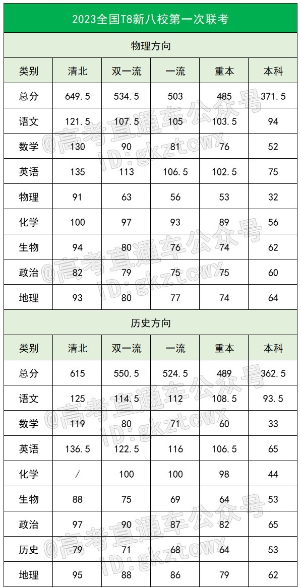 2023全国T8联考于12月15-16日考试,这次考试是全国八省的第一次联考,考试规模大、参考人数多。等这次联考结束,成绩出来之后,关于这次T8联考高三第一次联考的分数线也会相继出炉,在本文,高考100网将会为大家整理2023全国T8高三第一次联考分数线划分,含成绩排名位次,供同学们参考。