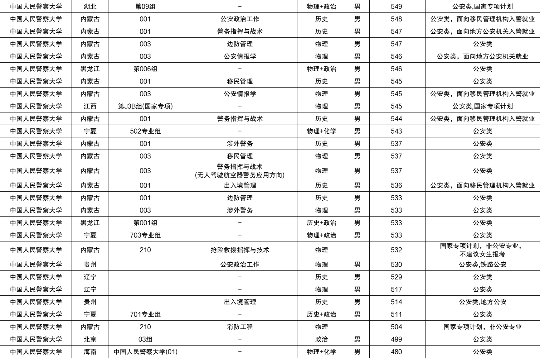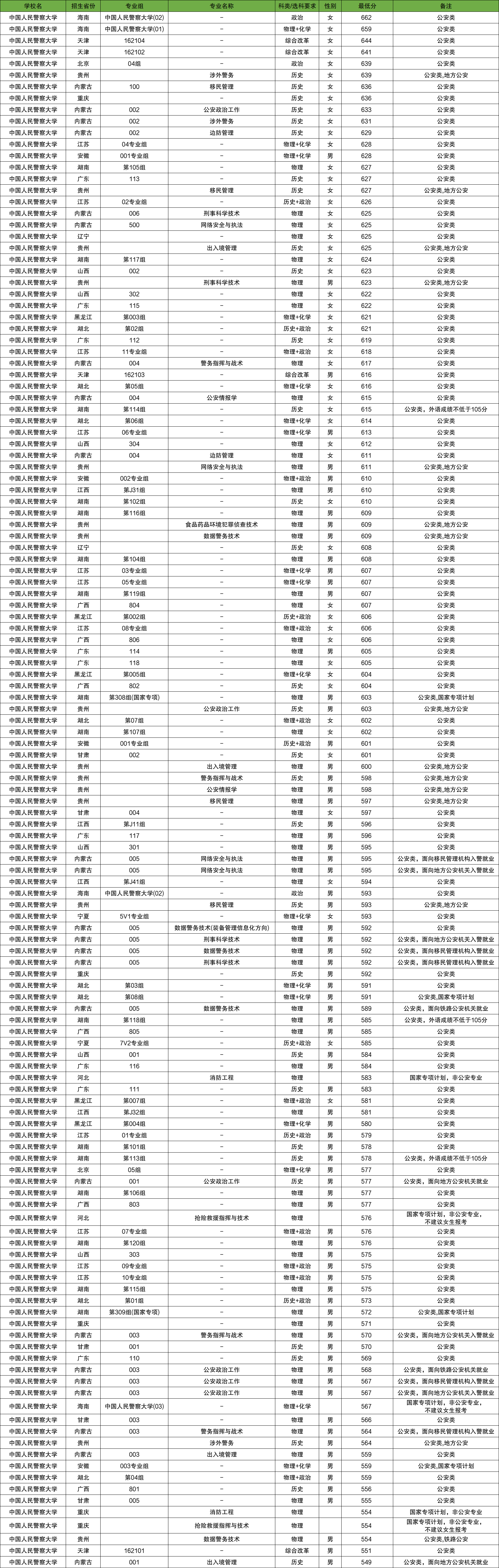 2025年中国人民警察大学提前批录取分数线是480分到662分,录取最低在海南物理+化学、录取最高在海南政治。