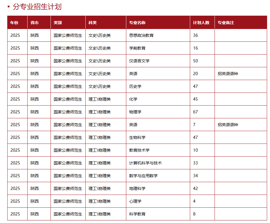 陕西师范大学:国家公费师范生招生专业包括心理学、地理科学、生物科学、教育技术学、数学与应用数学、化学等。