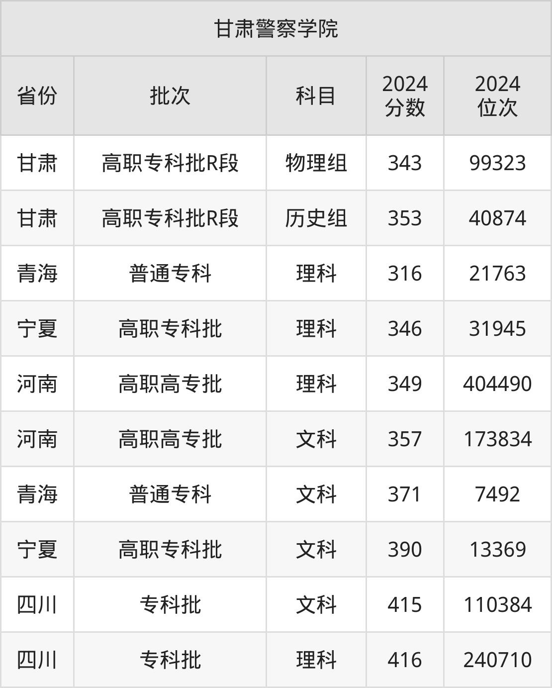 二、甘肃警察学院2024年录取分数线汇总
