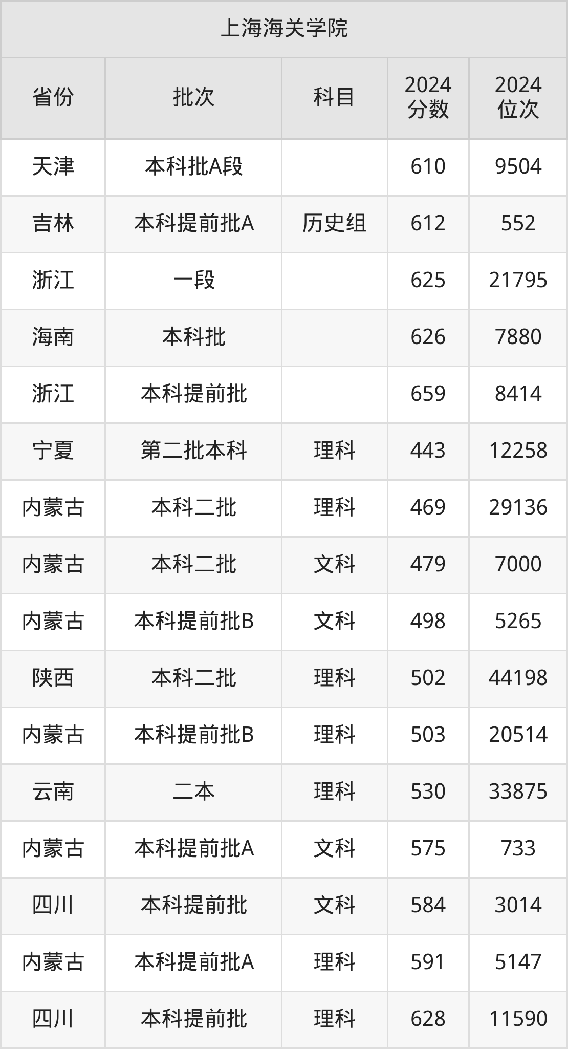 圆梦小编为2025届想要报考上海海关学院的同学整理了:上海海关学院2024年在全国19个省的最低分及录取位次。