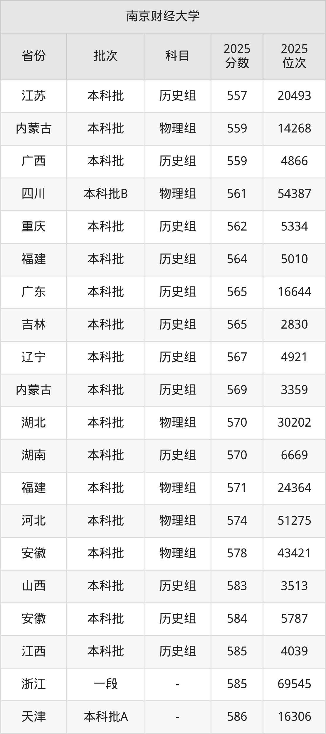 圆梦小编为2026届想要报考南京财经大学的同学整理了:南京财经大学2025年在全国27个省的最低分及录取位次。