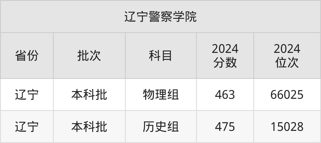 圆梦小编为2025届想要报考辽宁警察学院的同学整理了:辽宁警察学院2024年在全国1个省的最低分及录取位次。