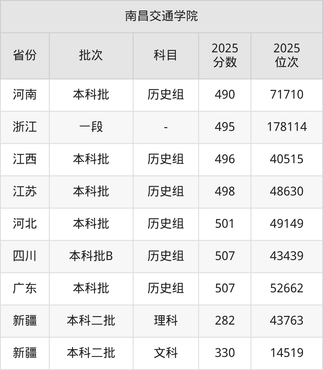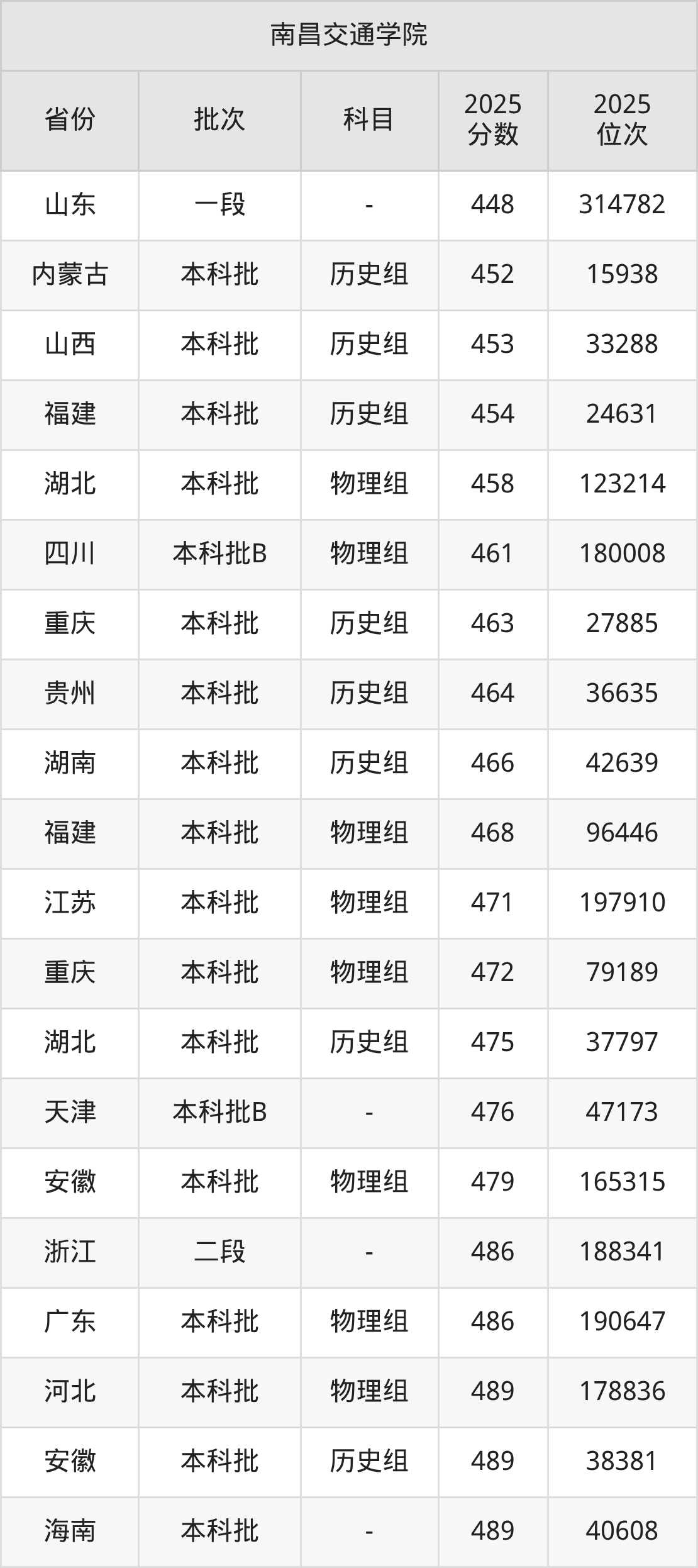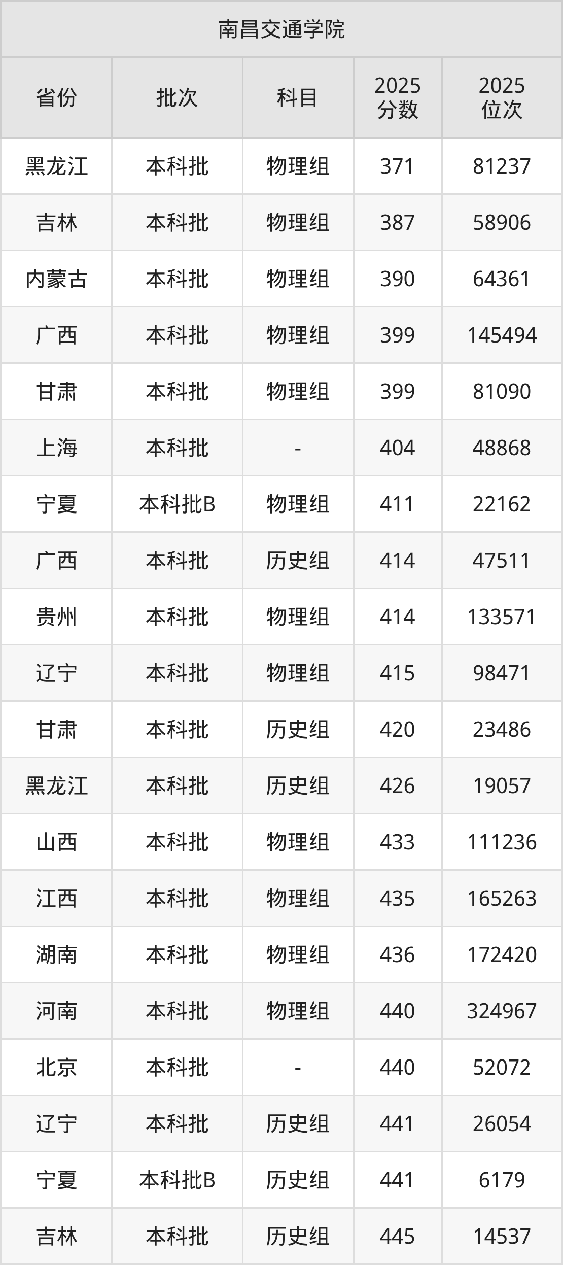 二、南昌交通学院2025年录取分数线汇总