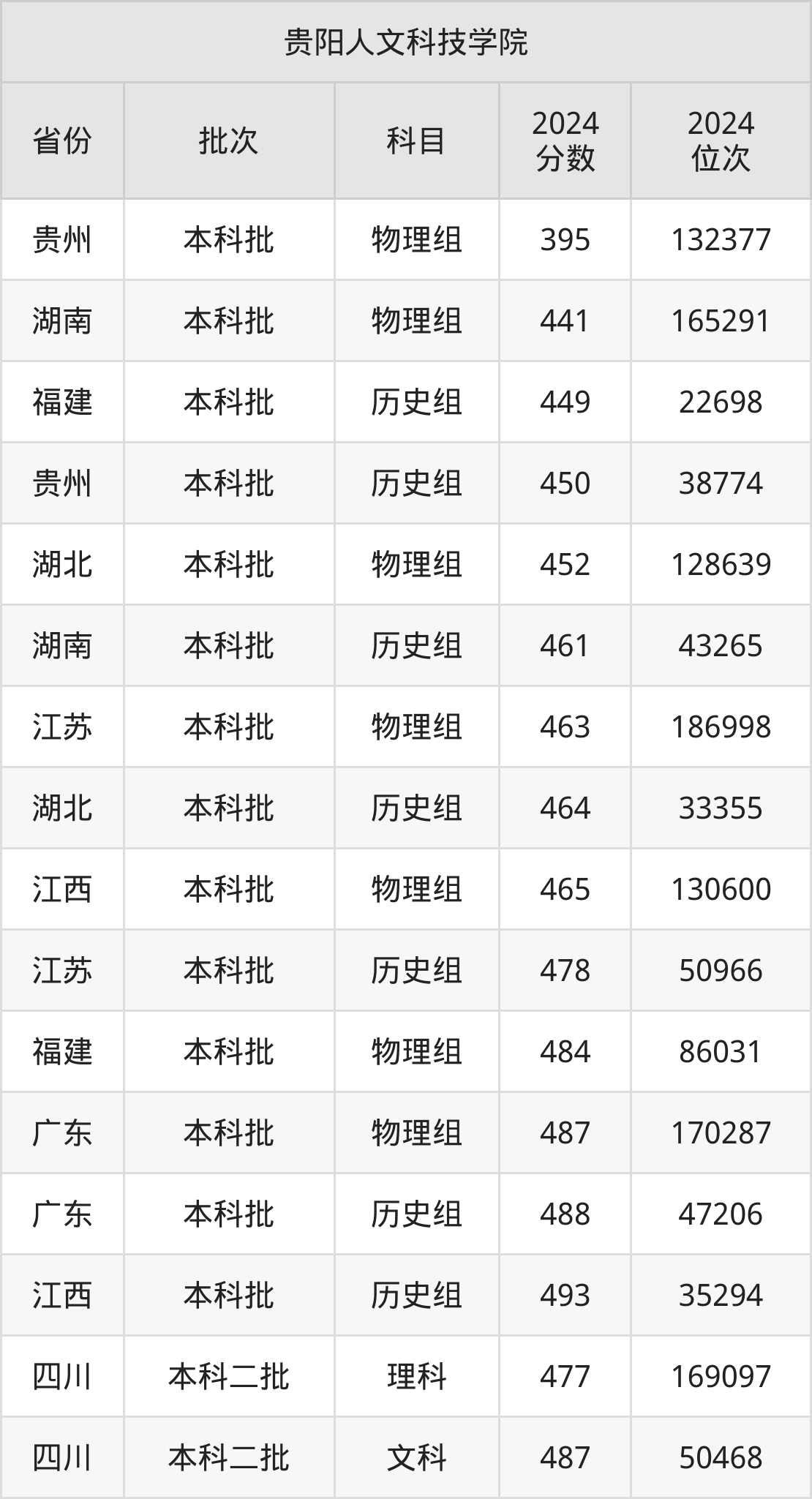 二、贵阳人文科技学院2024年录取分数线汇总