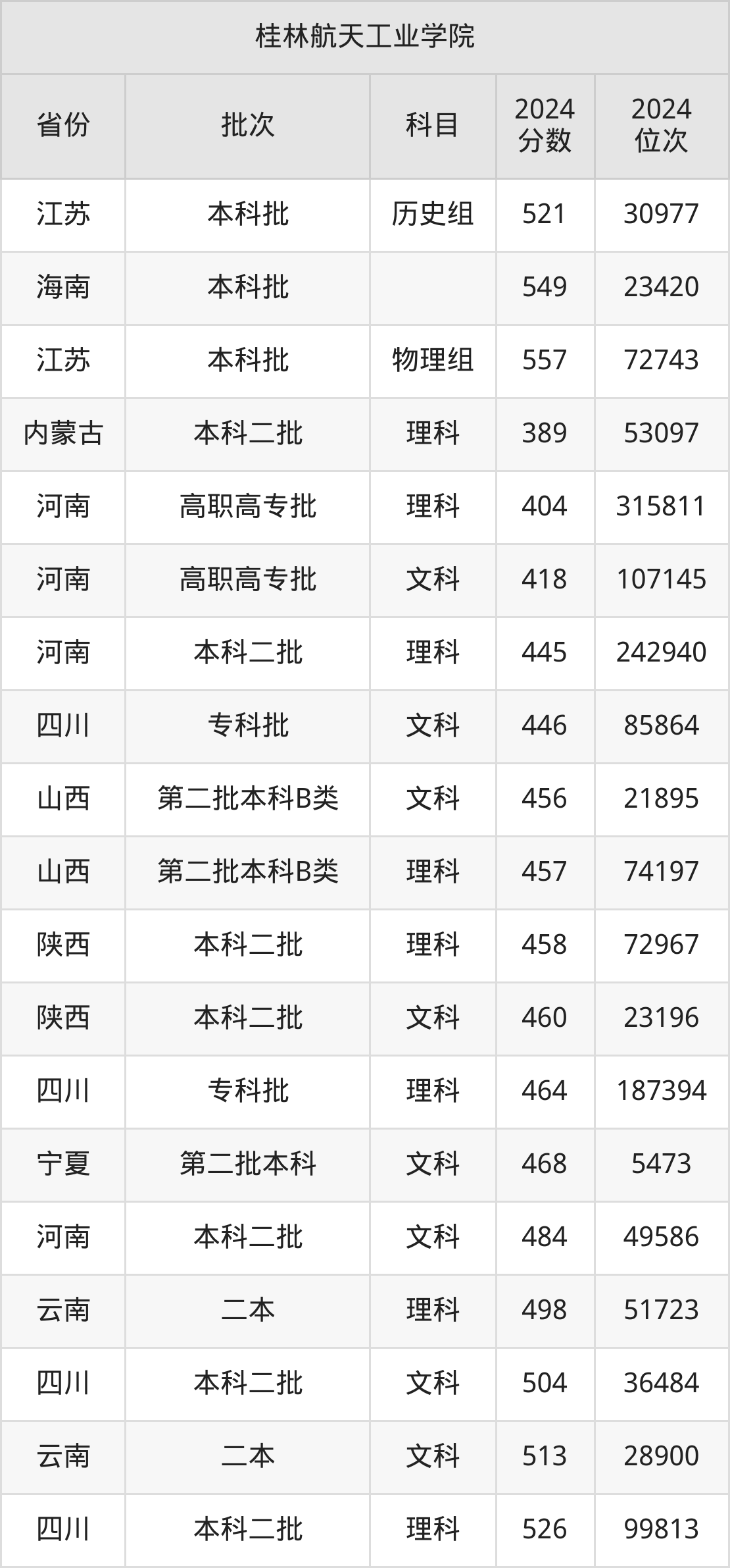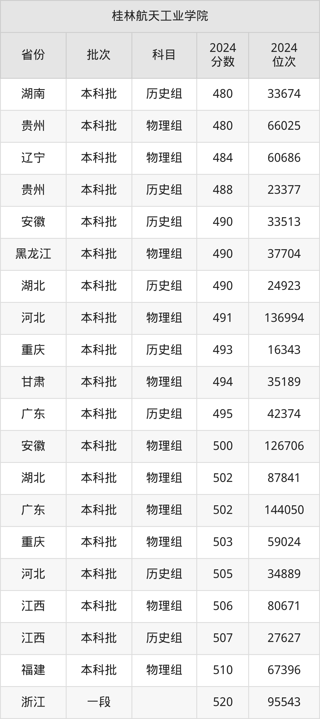 圆梦小编为2025届想要报考桂林航天工业学院的同学整理了:桂林航天工业学院2024年在全国25个省的最低分及录取位次。