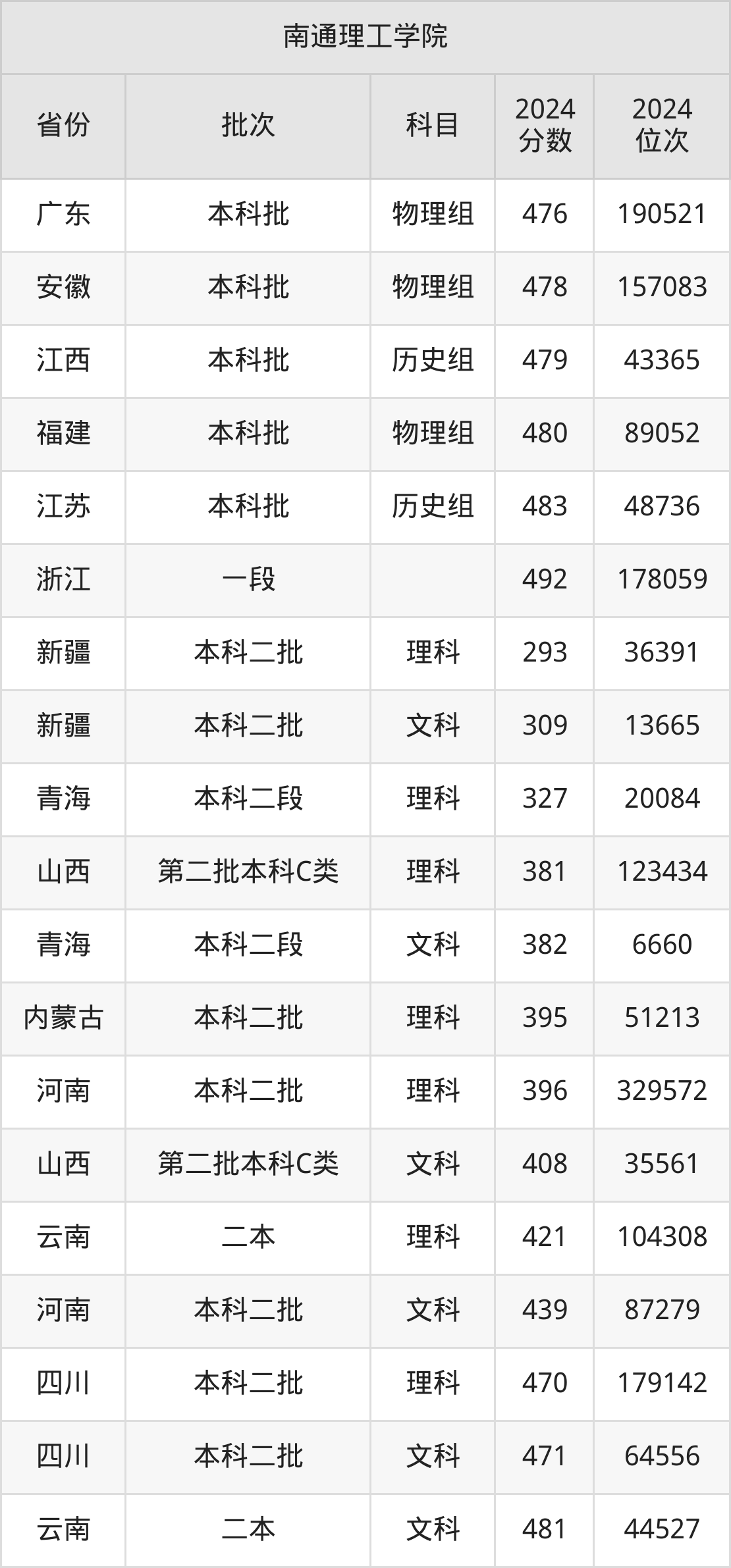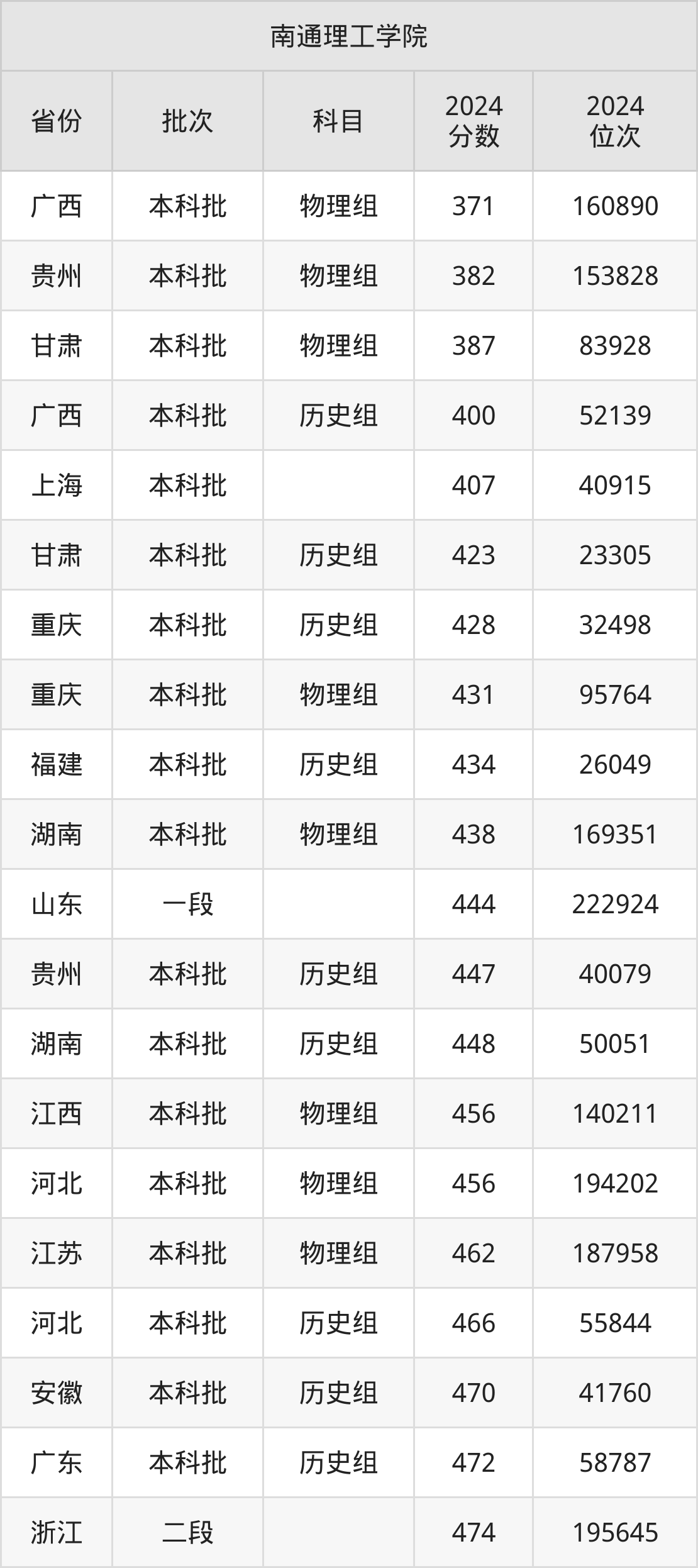 在广西本科批物理组,南通理工学院的最低分是371、最低录取位次是160890名。在贵州本科批物理组,南通理工学院的最低分是382、最低录取位次是153828名。