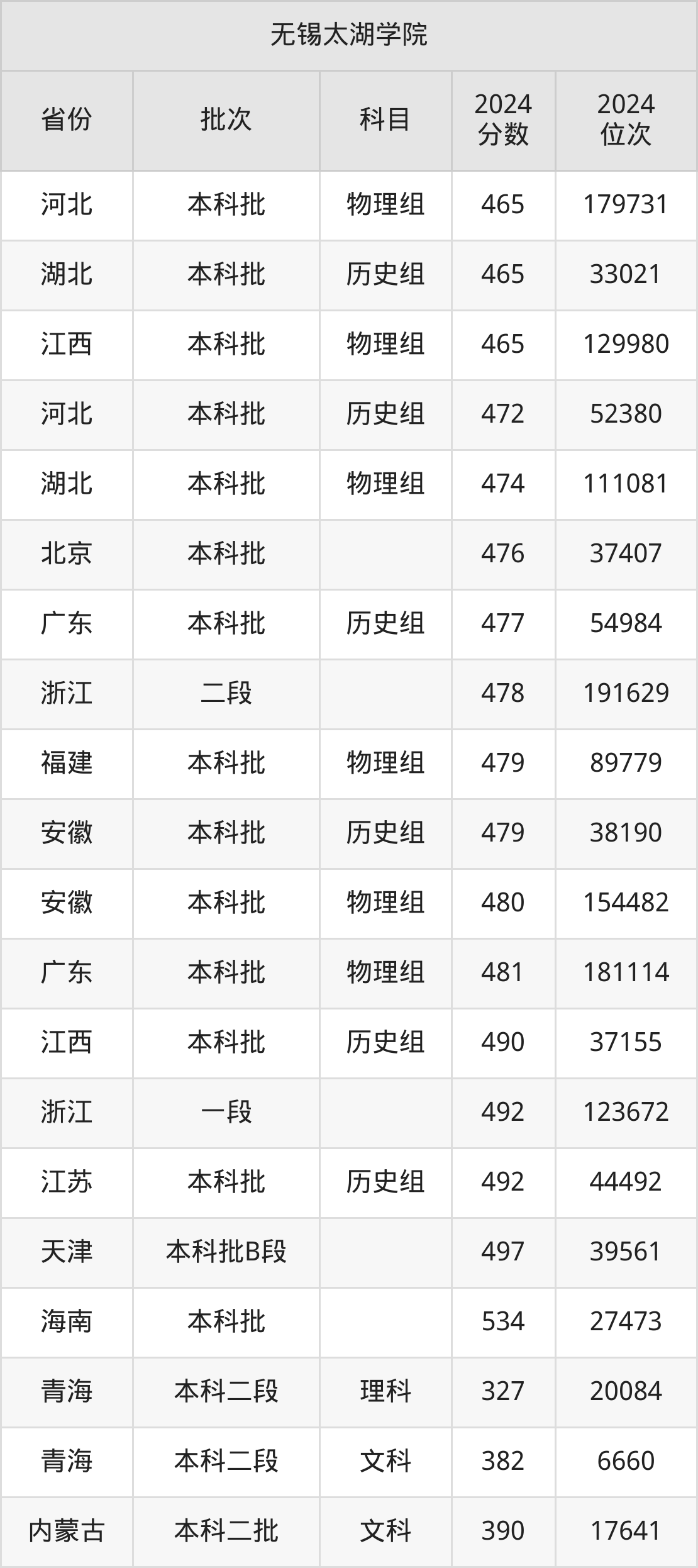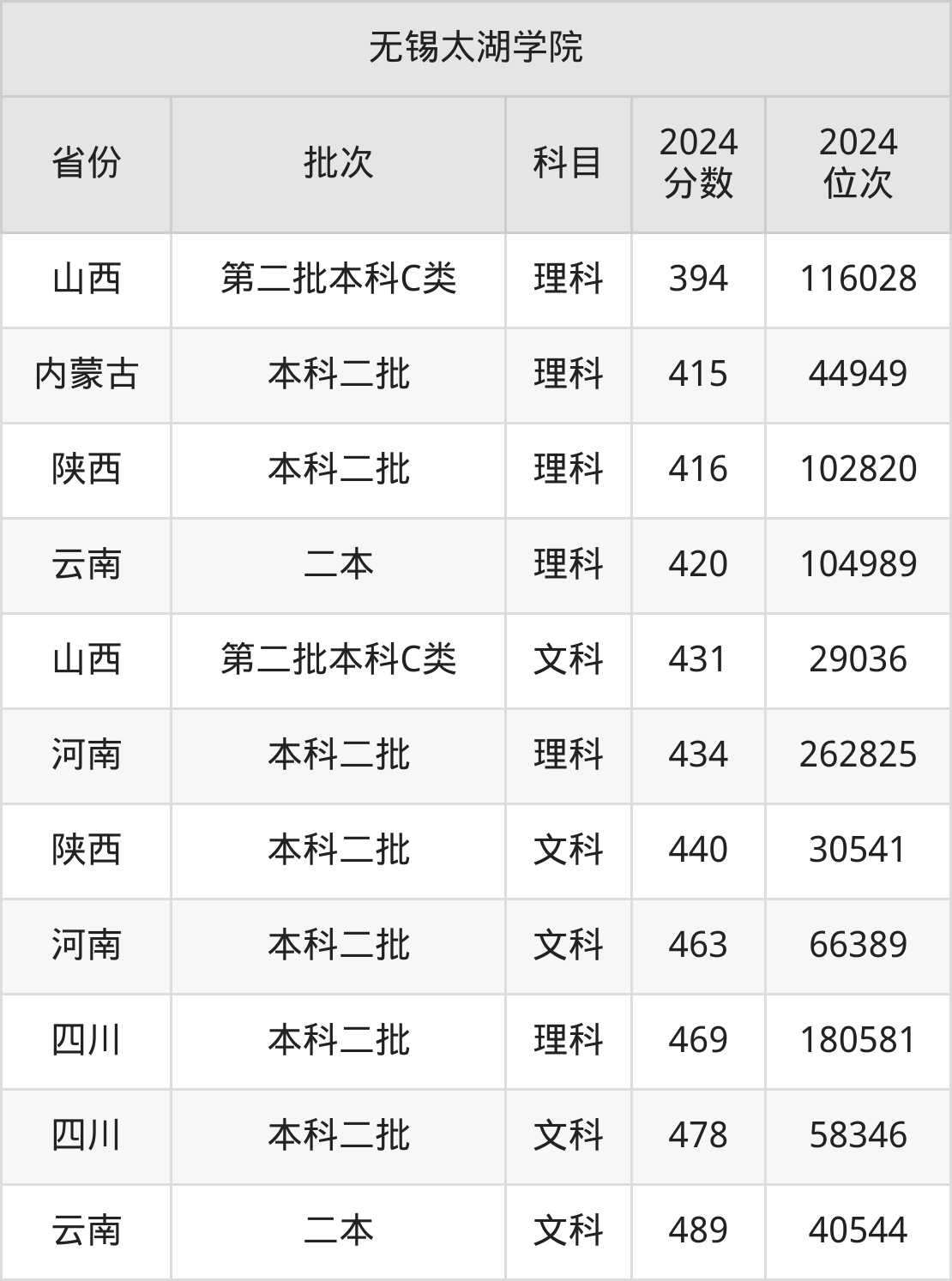 二、无锡太湖学院2024年录取分数线汇总