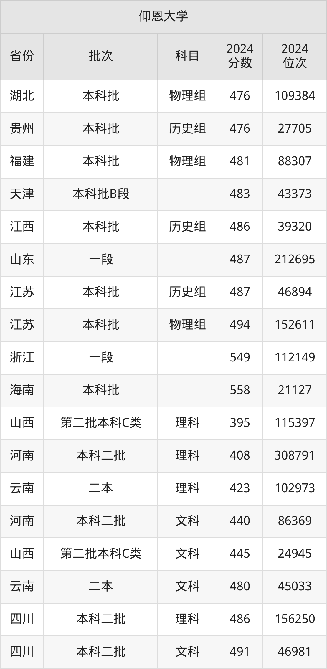 圆梦小编为2025届想要报考仰恩大学的同学整理了:仰恩大学2024年在全国21个省的最低分及录取位次。