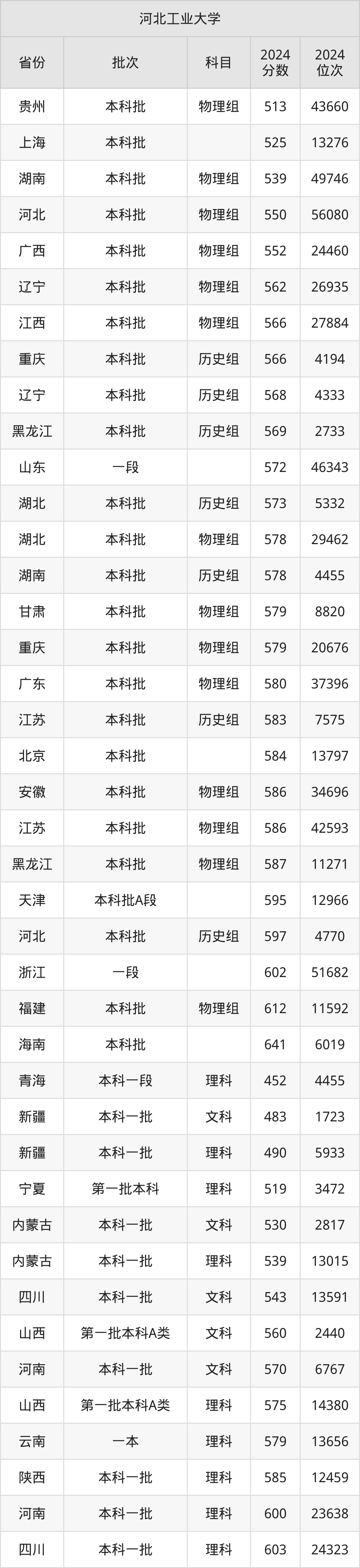 二、河北工业大学2024年录取分数线汇总
