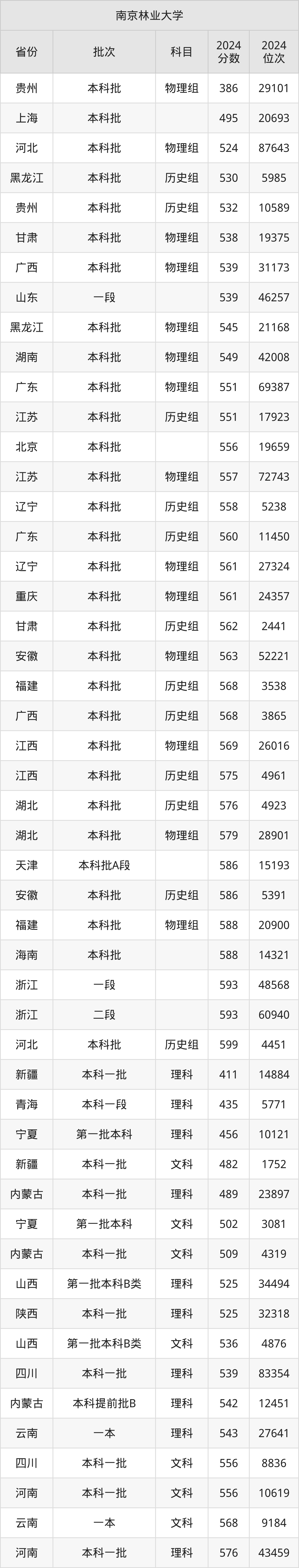圆梦小编为2025届想要报考南京林业大学的同学整理了:南京林业大学2024年在全国29个省的最低分及录取位次。