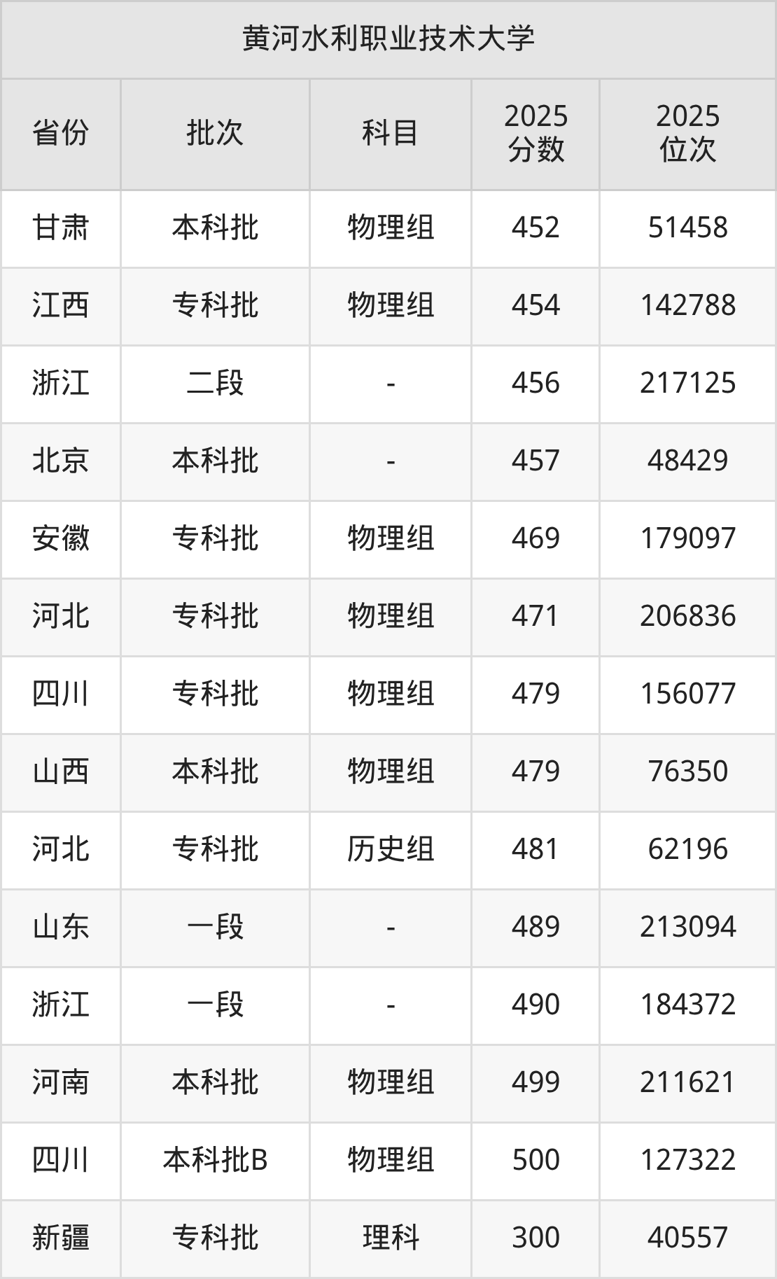 二、黄河水利职业技术大学2025年录取分数线汇总