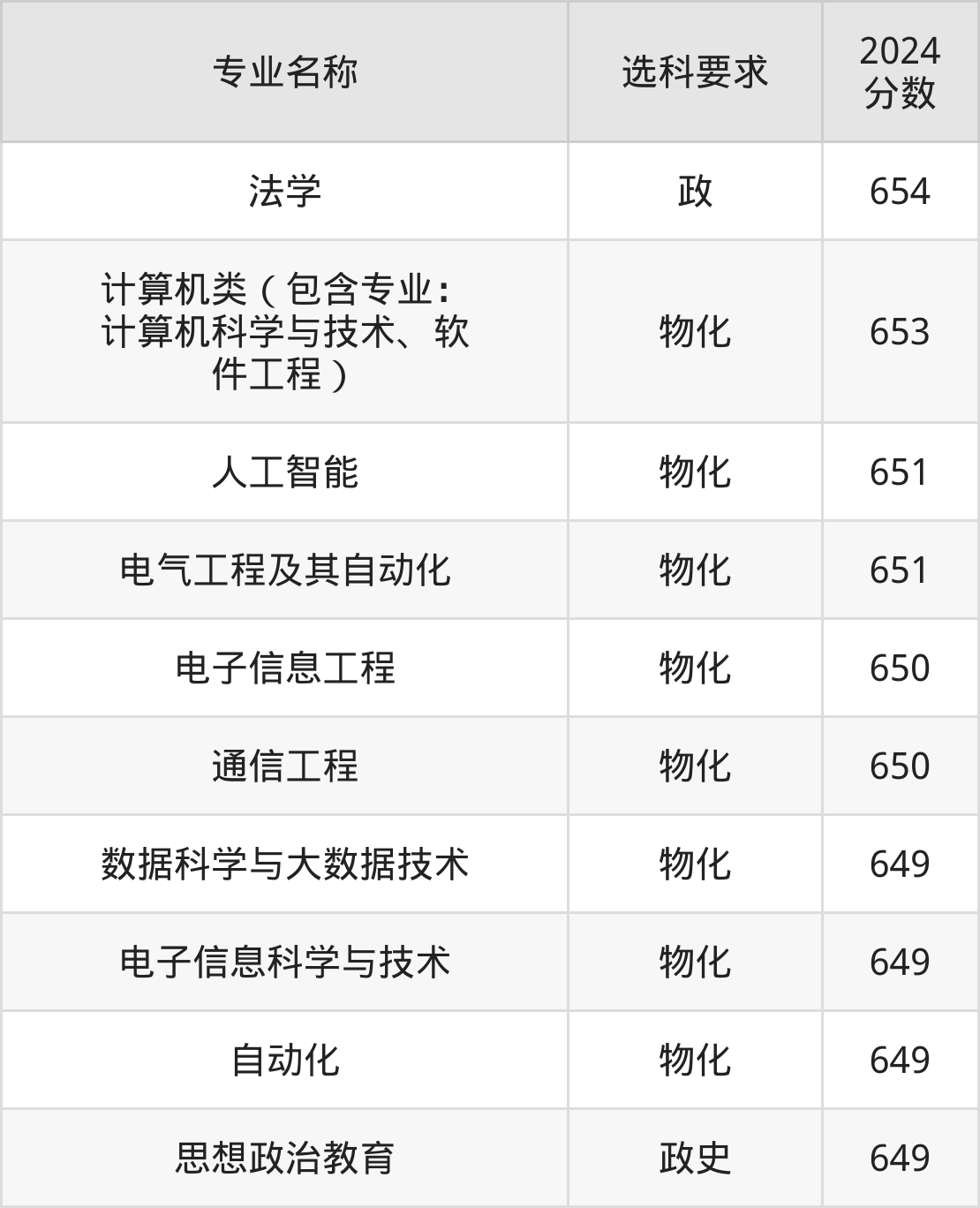 对于浙江高三学生而言,西南交通大学热门专业是:法学、计算机类、人工智能、电气工程及其自动化、电子信息工程、通信工程、数据科学与大数据技术、电子信息科学与技术、自动化、思想政治教育,2024年在浙江的最低分是649至654。