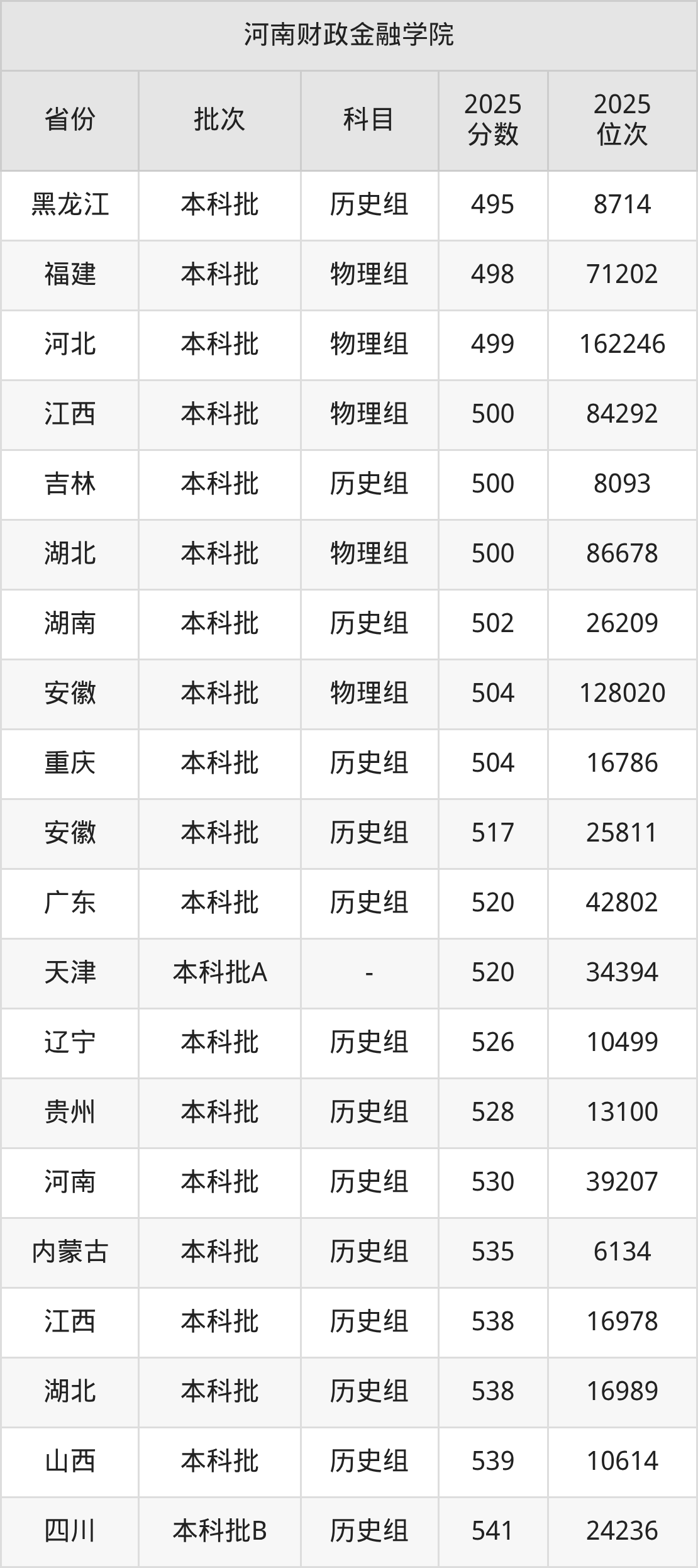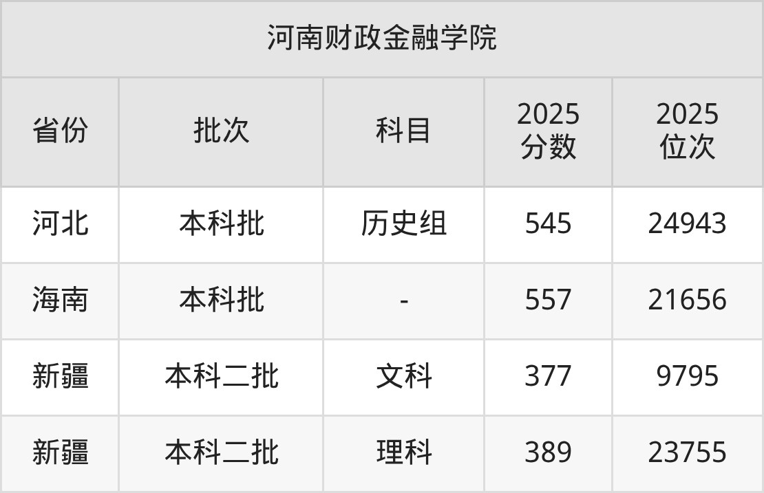 二、河南财政金融学院2025年录取分数线汇总